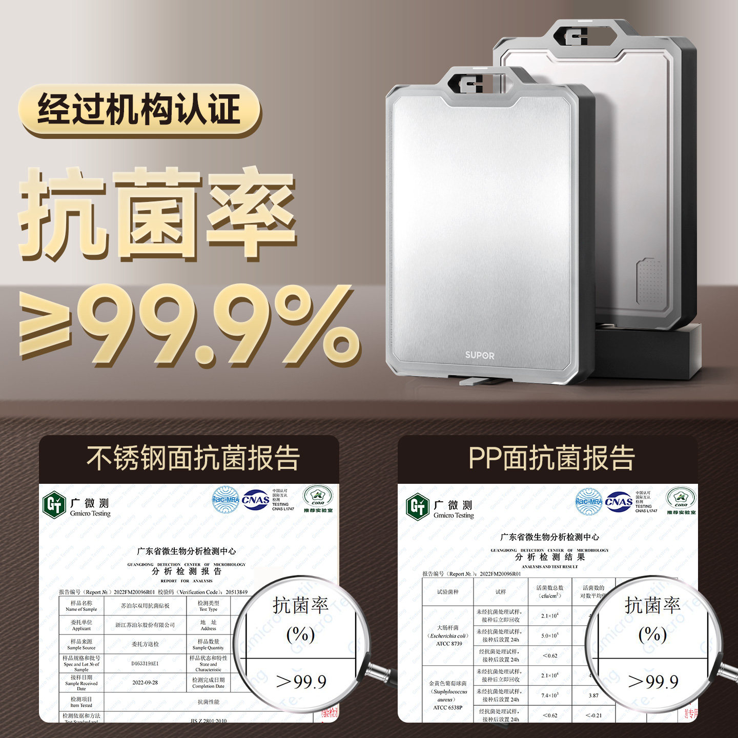 苏泊尔菜板抗菌防霉家用不锈钢双面刀粘板案板切菜板厨房专用砧板