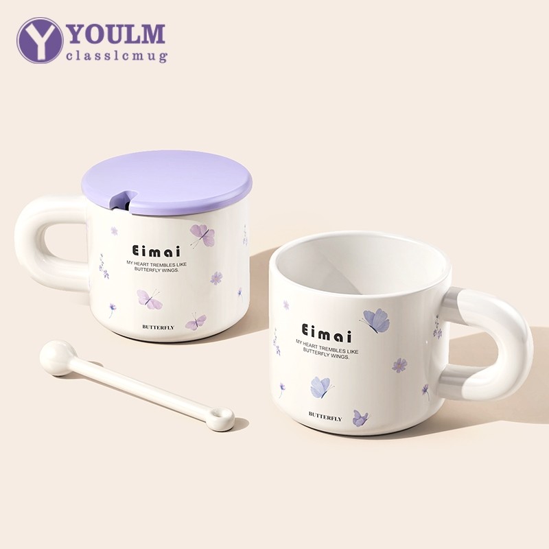 水杯女生办公室陶瓷马克杯釉下彩高颜值咖啡杯子家用喝水带盖带勺