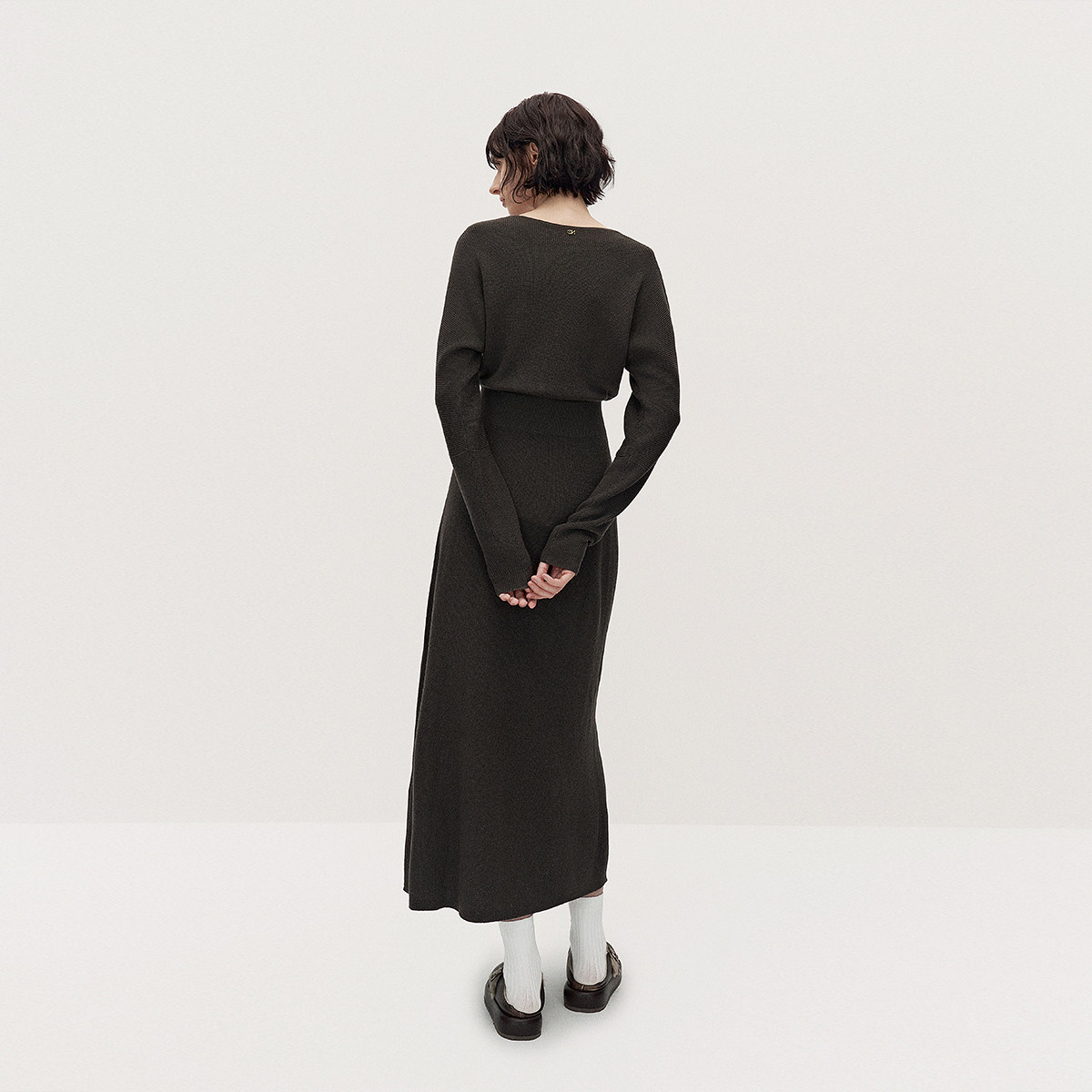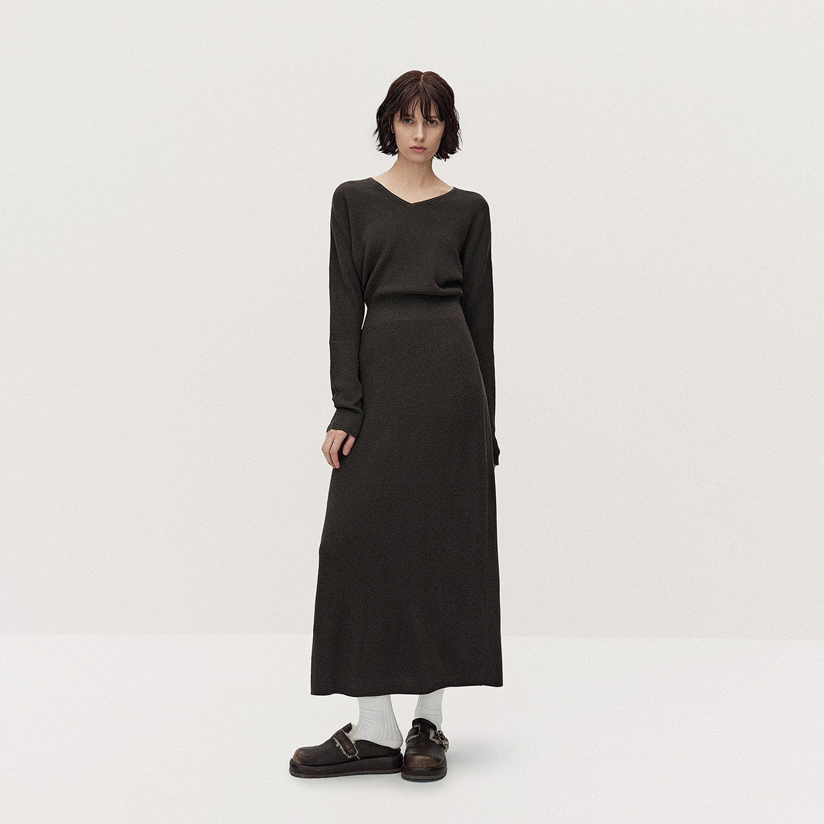 【季末折扣】欧时力 羊毛软糯气质毛针织连衣裙V领2025秋冬尖货