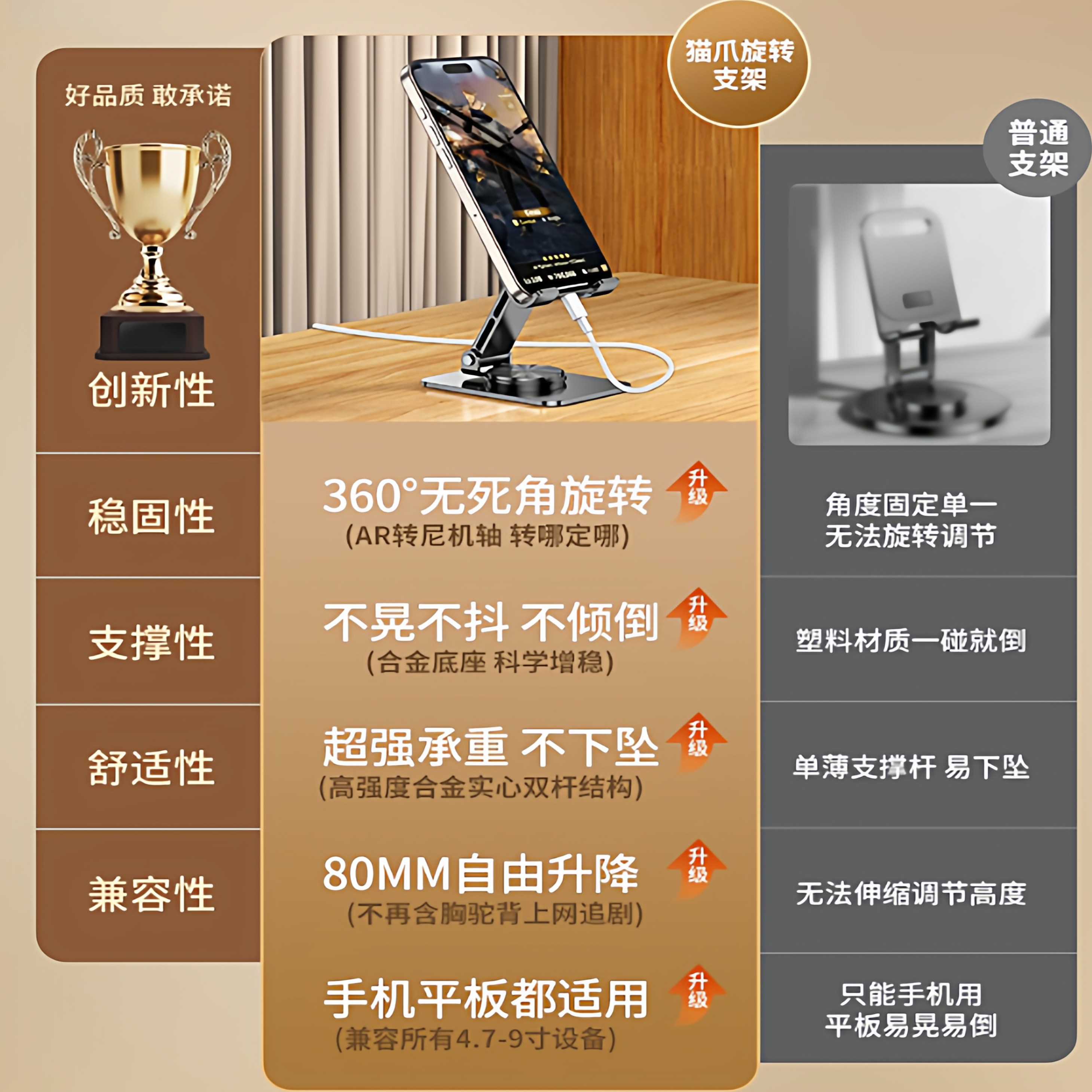 2026手机支架桌面懒人平板电脑支撑架可旋转折叠手机架直播视频ipad支撑架子航空金属720旋转手机架支架便携