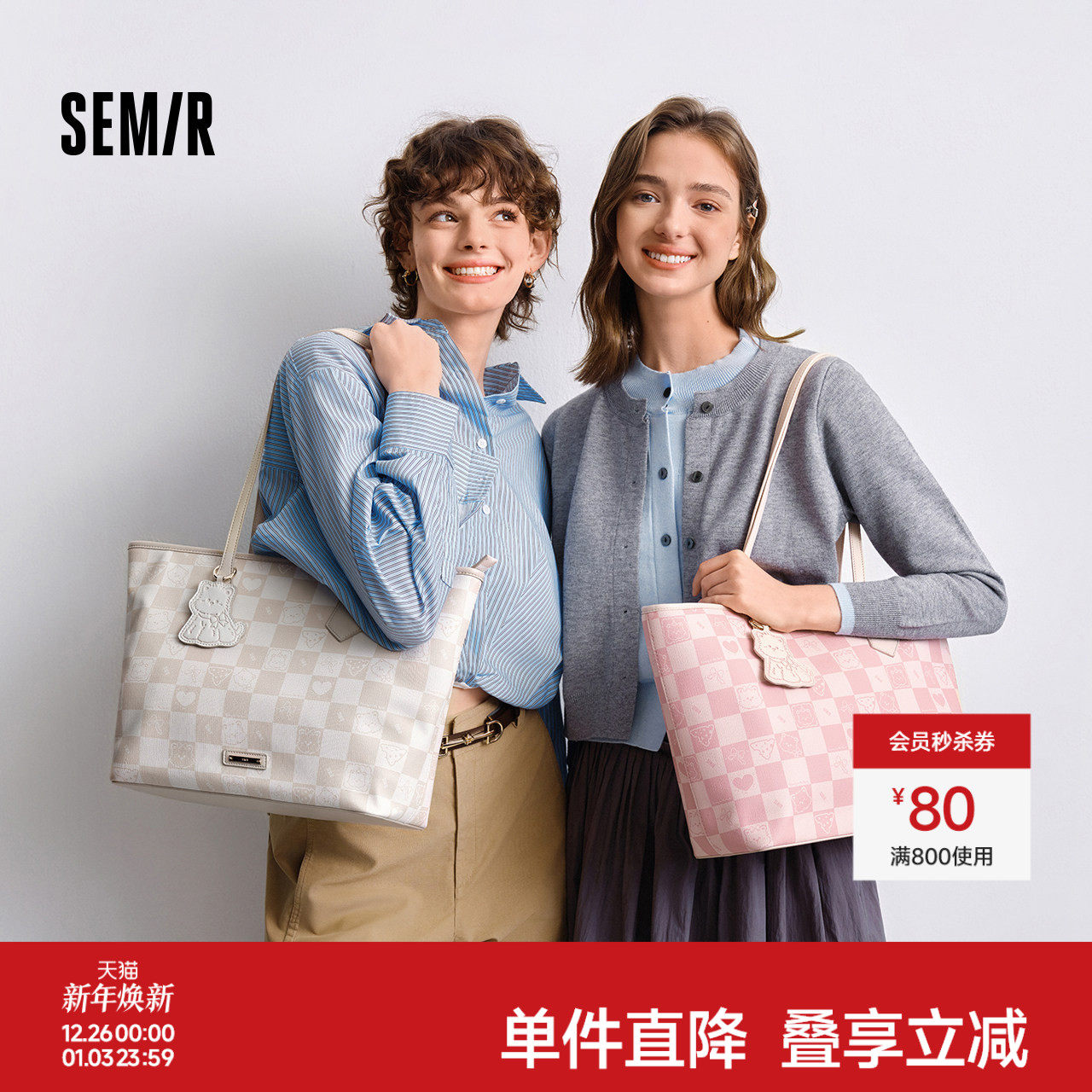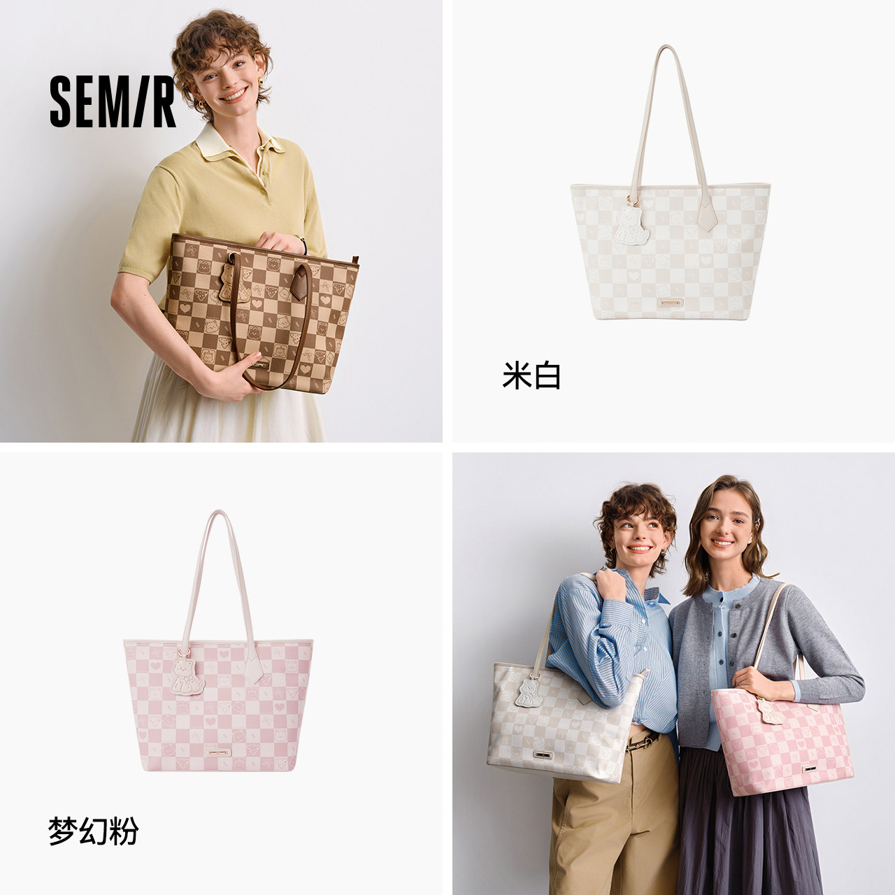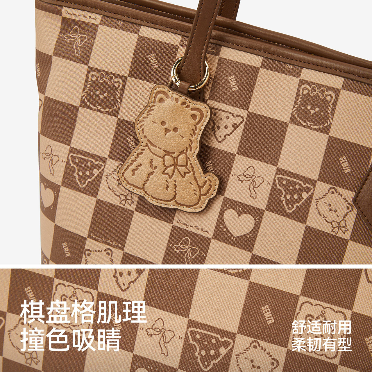 森马托特包女大容量手提包小狗棋盘格印花单肩包通勤休闲2025新款