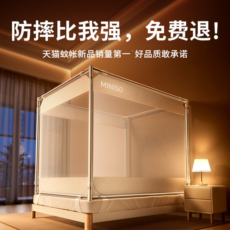 名创优品防摔蚊帐2026新款蒙古包家用卧室免安装儿童婴儿防止掉床