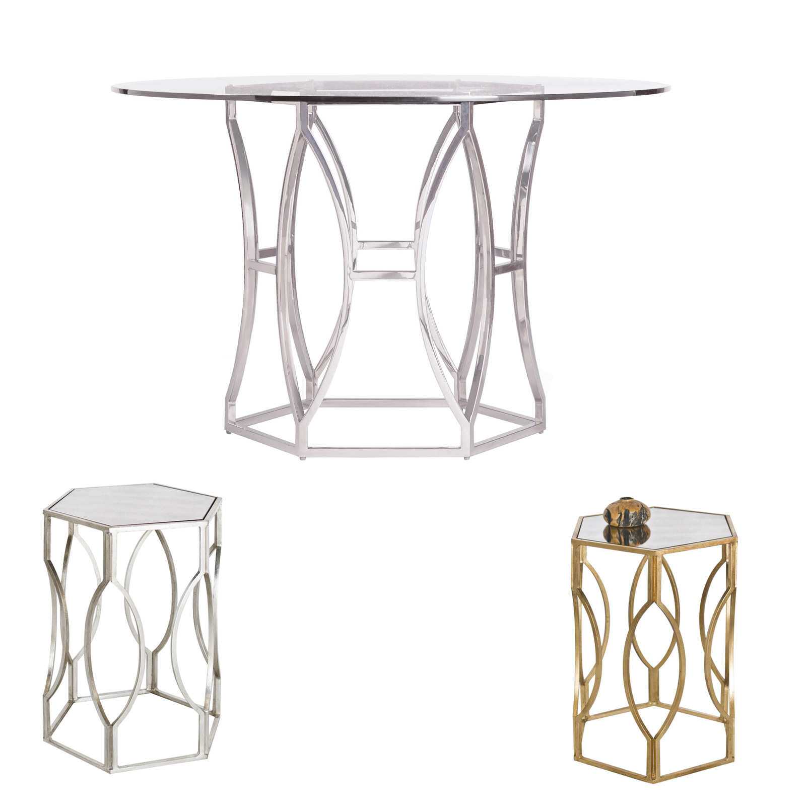 美式简约不锈钢六边形餐桌/软装设计/别墅/酒店餐厅/轻奢餐桌