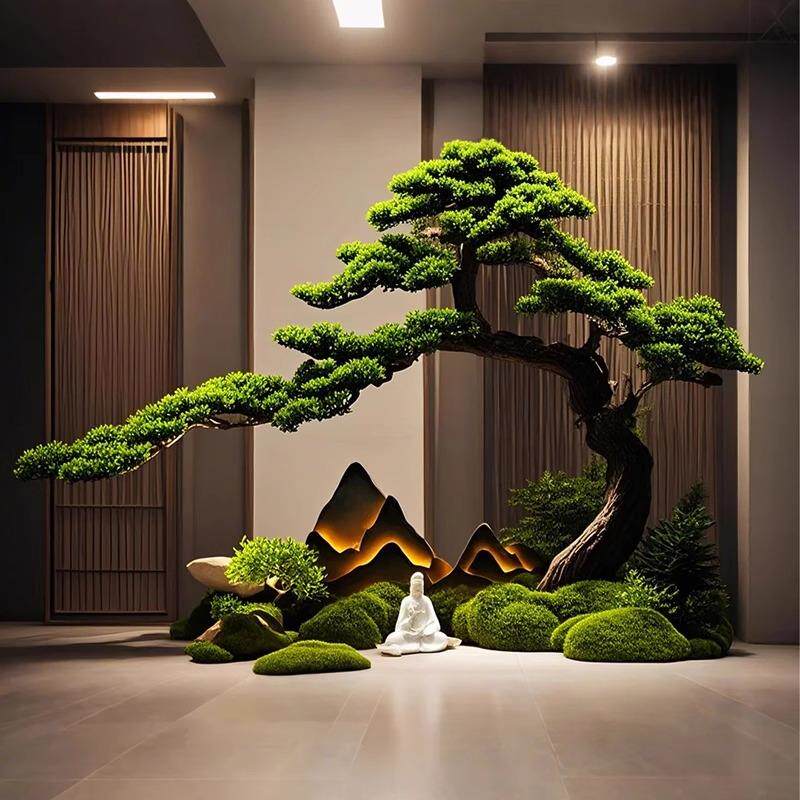 仿真迎客松造景假松树大型仿生绿植玄关酒店室内景观植物高端轻奢
