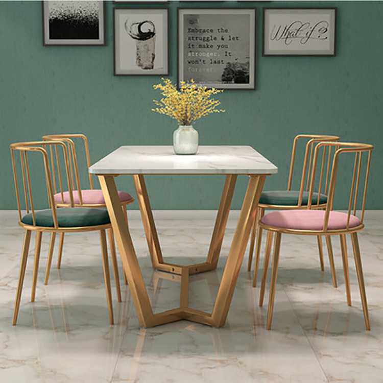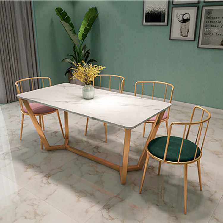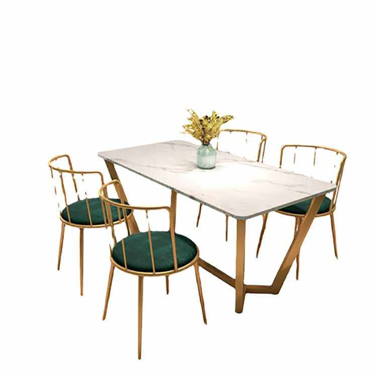 欧式大理石餐桌椅组合 家用简约轻奢长方形饭桌 轻奢铁艺吃饭桌子