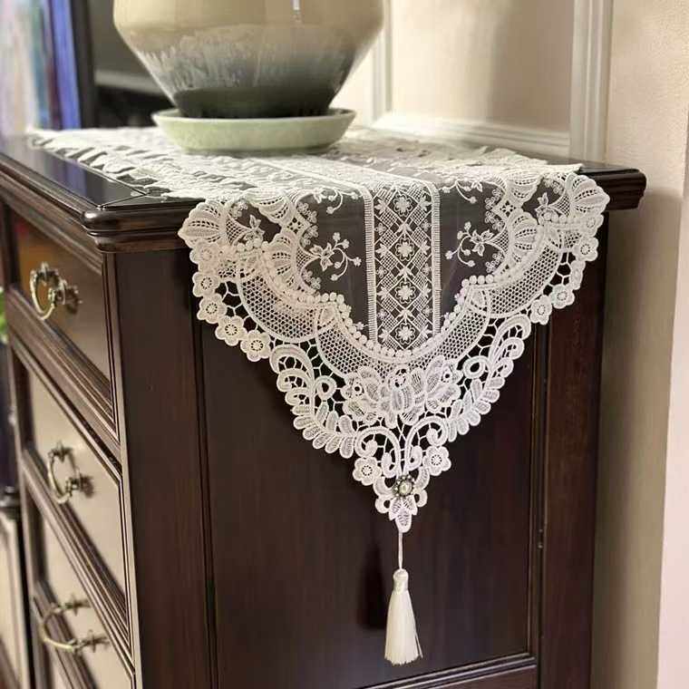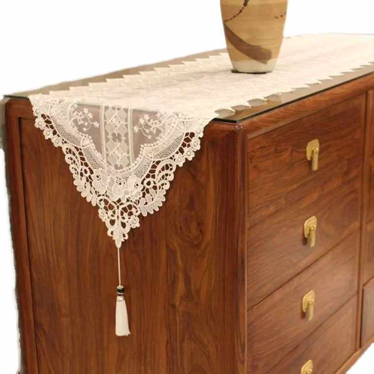 欧式轻奢白色蕾丝五斗柜鞋柜梳妆台防尘盖布艺电视柜茶几餐桌桌旗