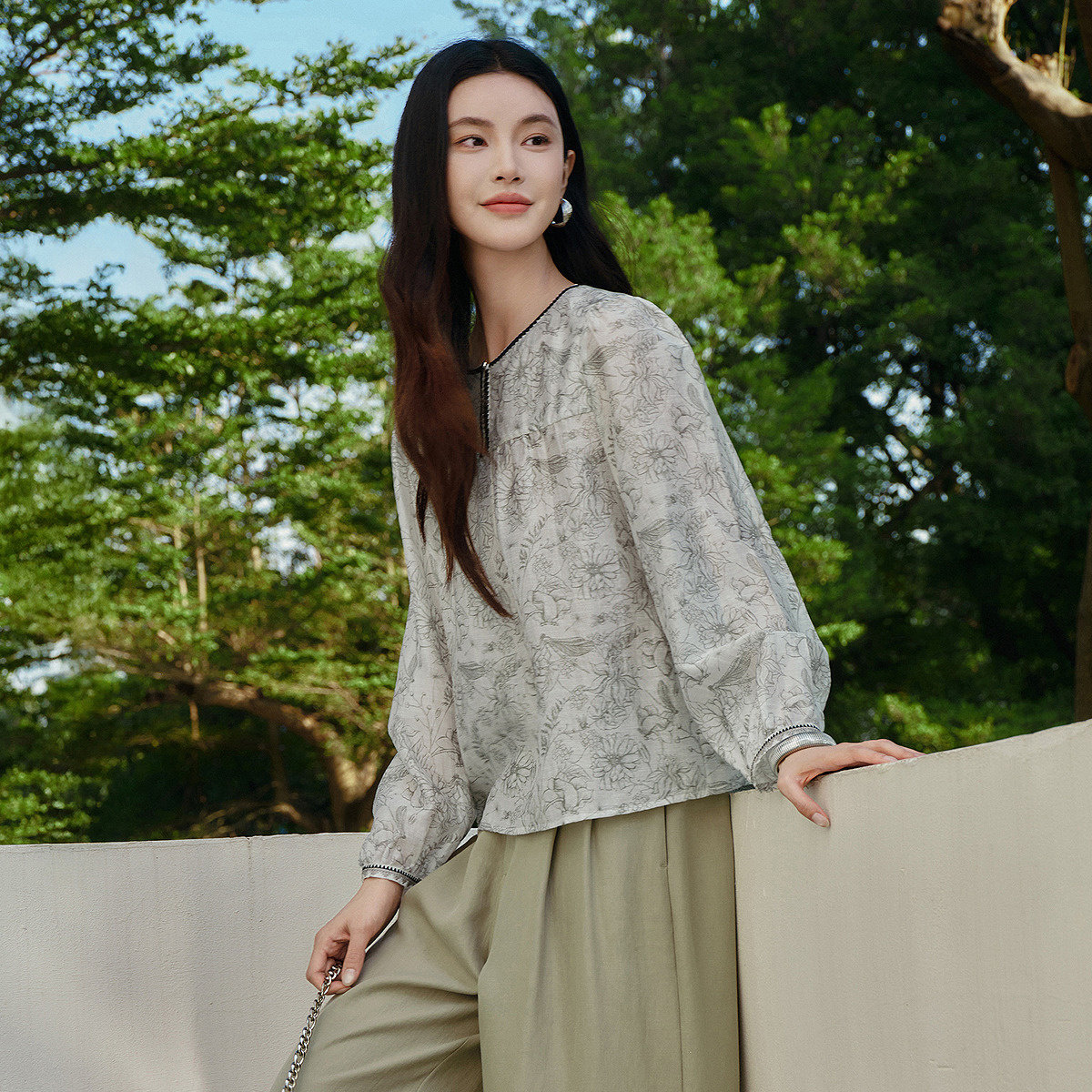 【莱赛尔纤维】FINITY菲妮迪雪纺衫26春新款设计感刺绣透气上衣女