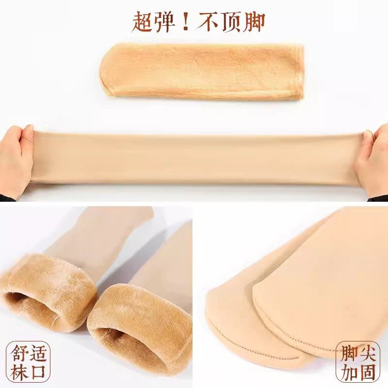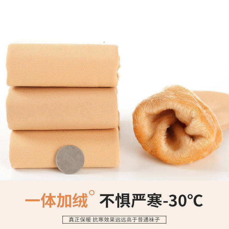 发热雪地袜子女士秋冬加绒加厚中筒袜光腿露脚踝神器肉色月子长袜