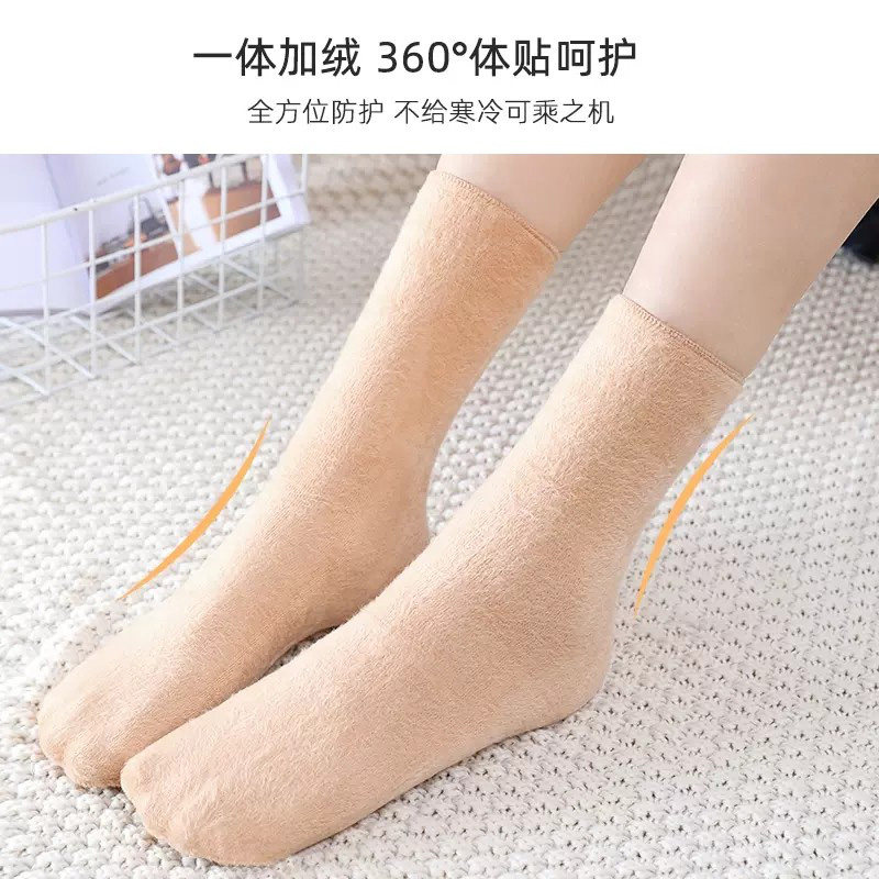 珊瑚绒袜子女秋冬季中筒袜女生冬天居家睡眠月子袜加绒加厚地板袜