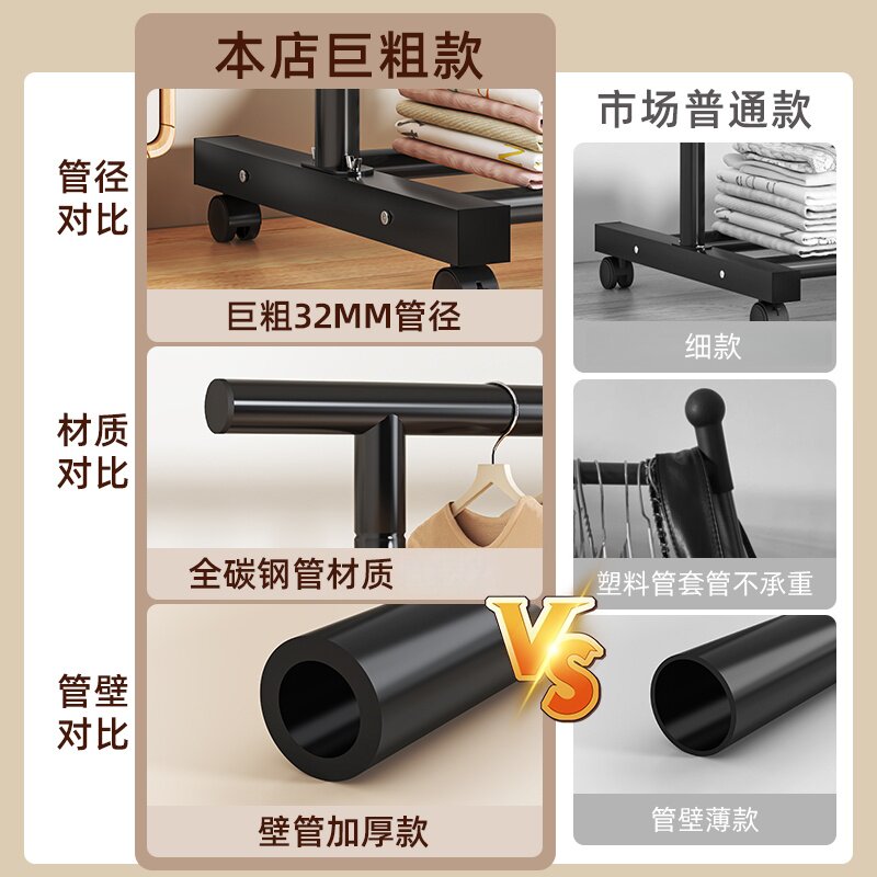 晾衣架落地家用阳台卧室挂衣服单杆简易室内宿舍移动晒凉衣帽架子