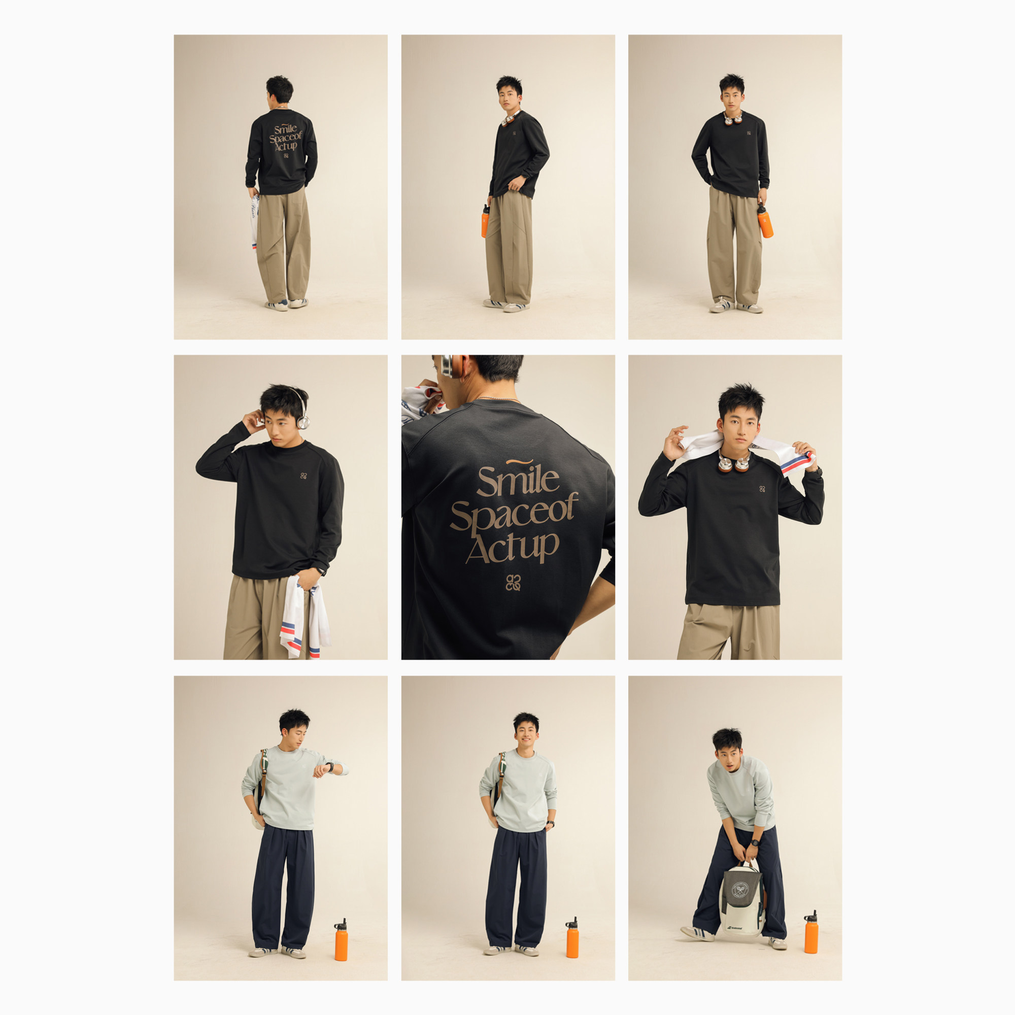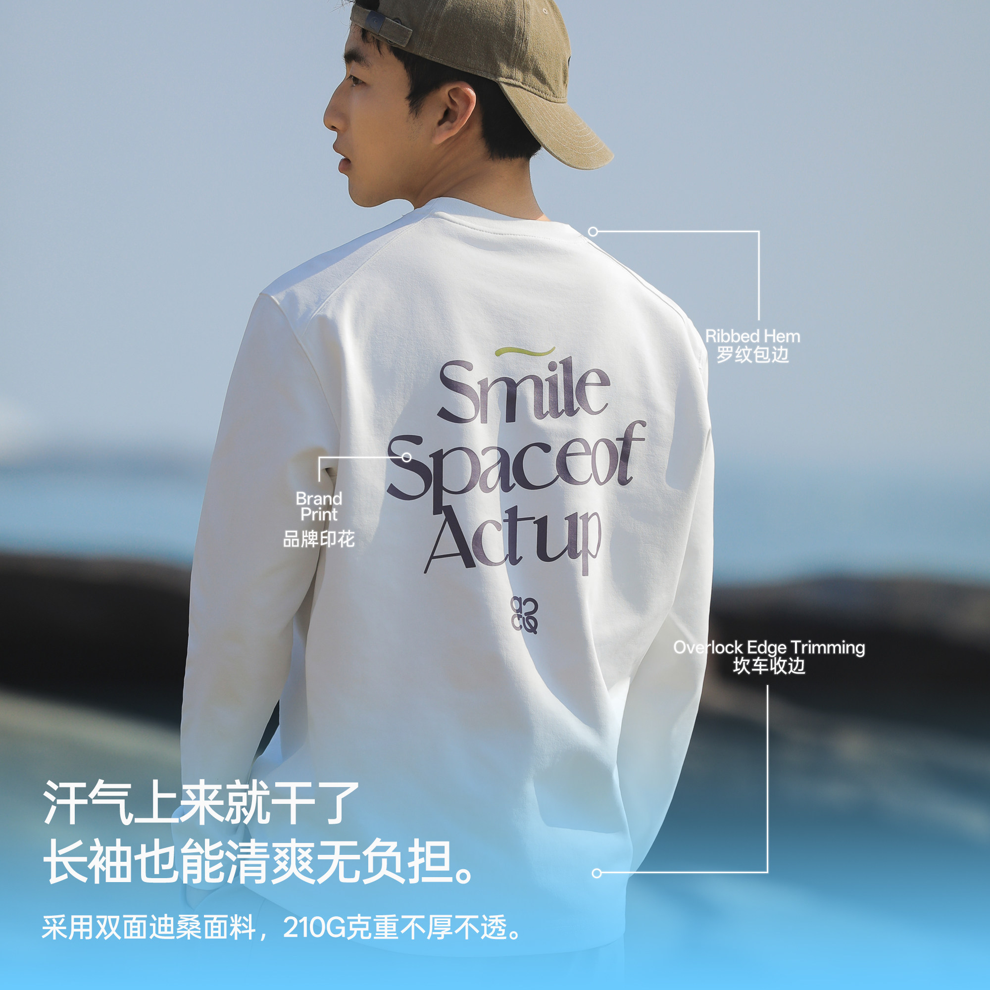 吕小虎ACTUP 春季后背印花长袖T恤男圆领纯色内搭打底衫通勤上衣