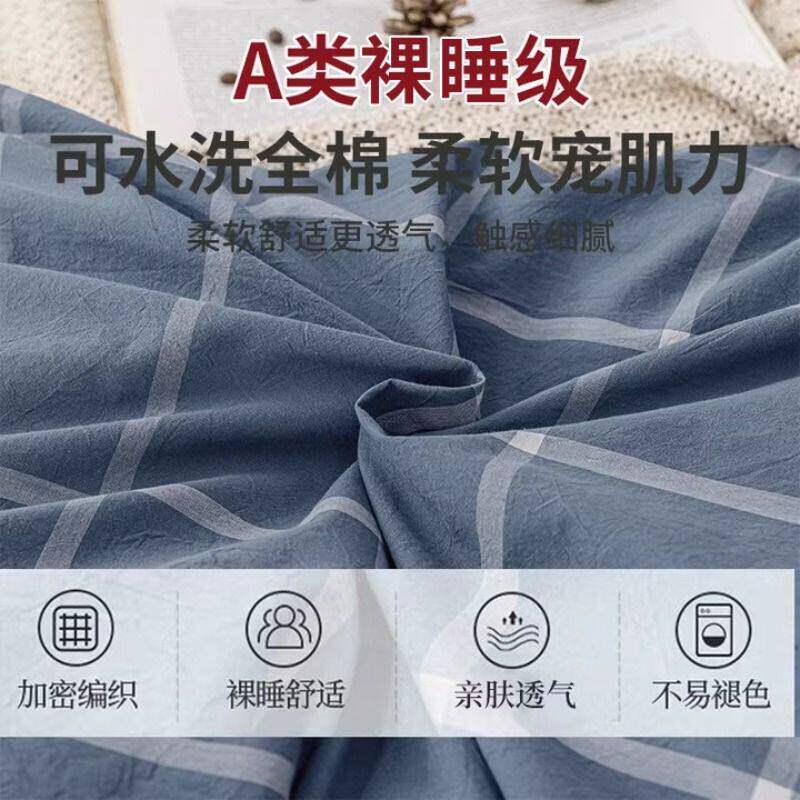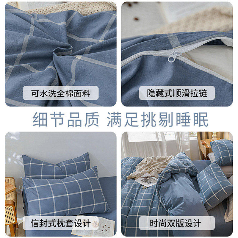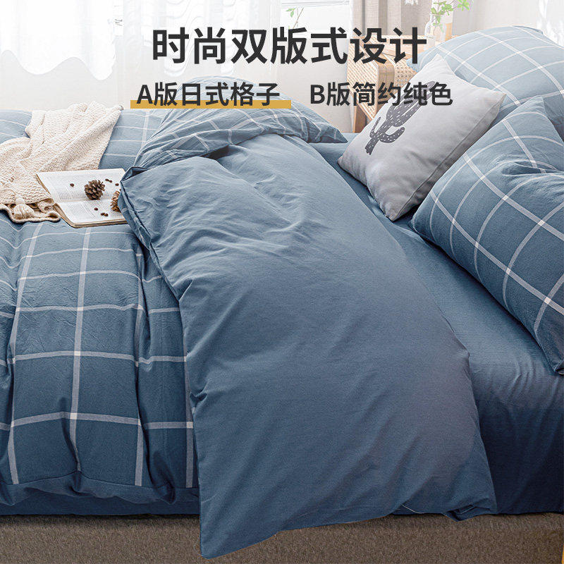 A类水洗棉双层纱四件套被罩非全棉纯棉床单人学生宿舍被套三件套