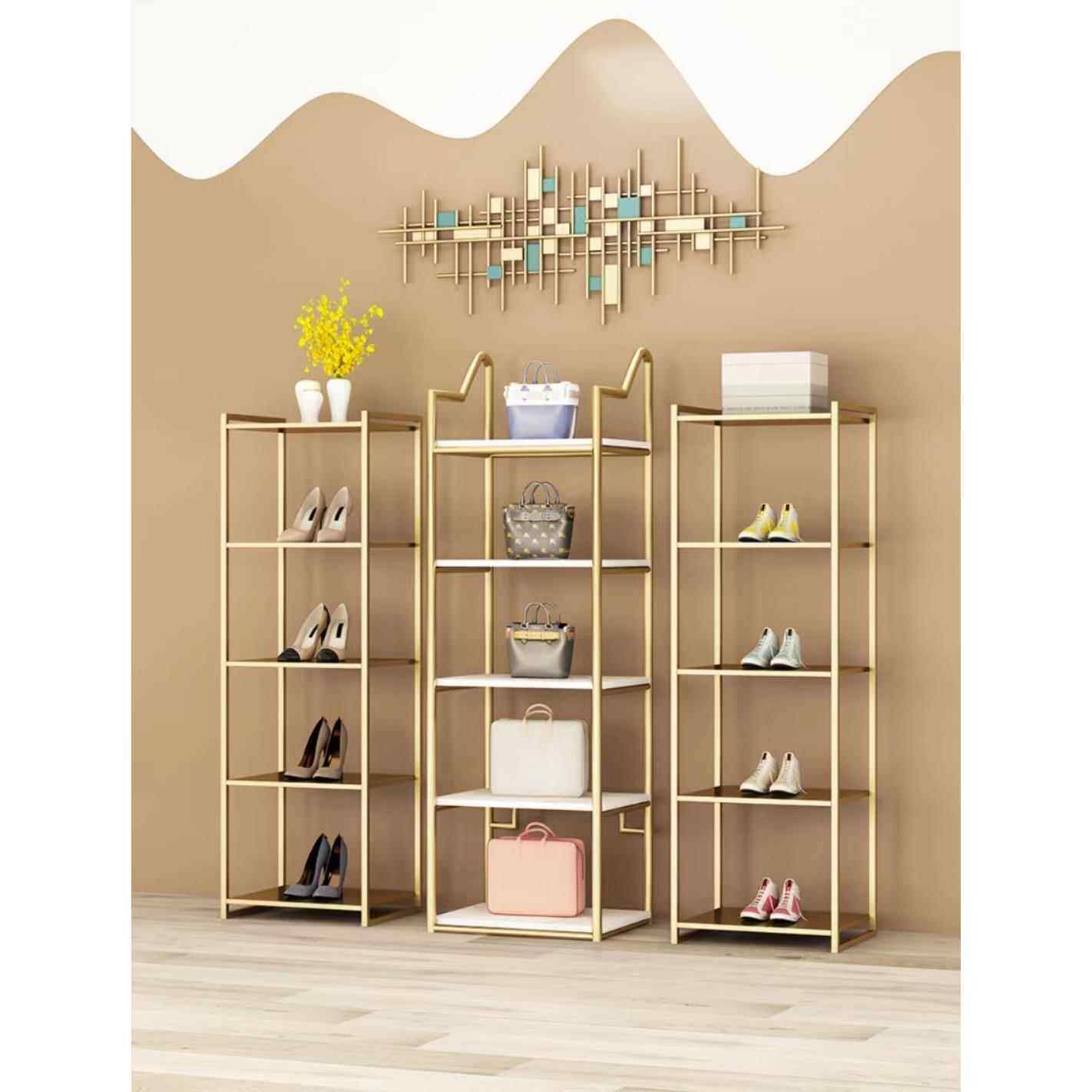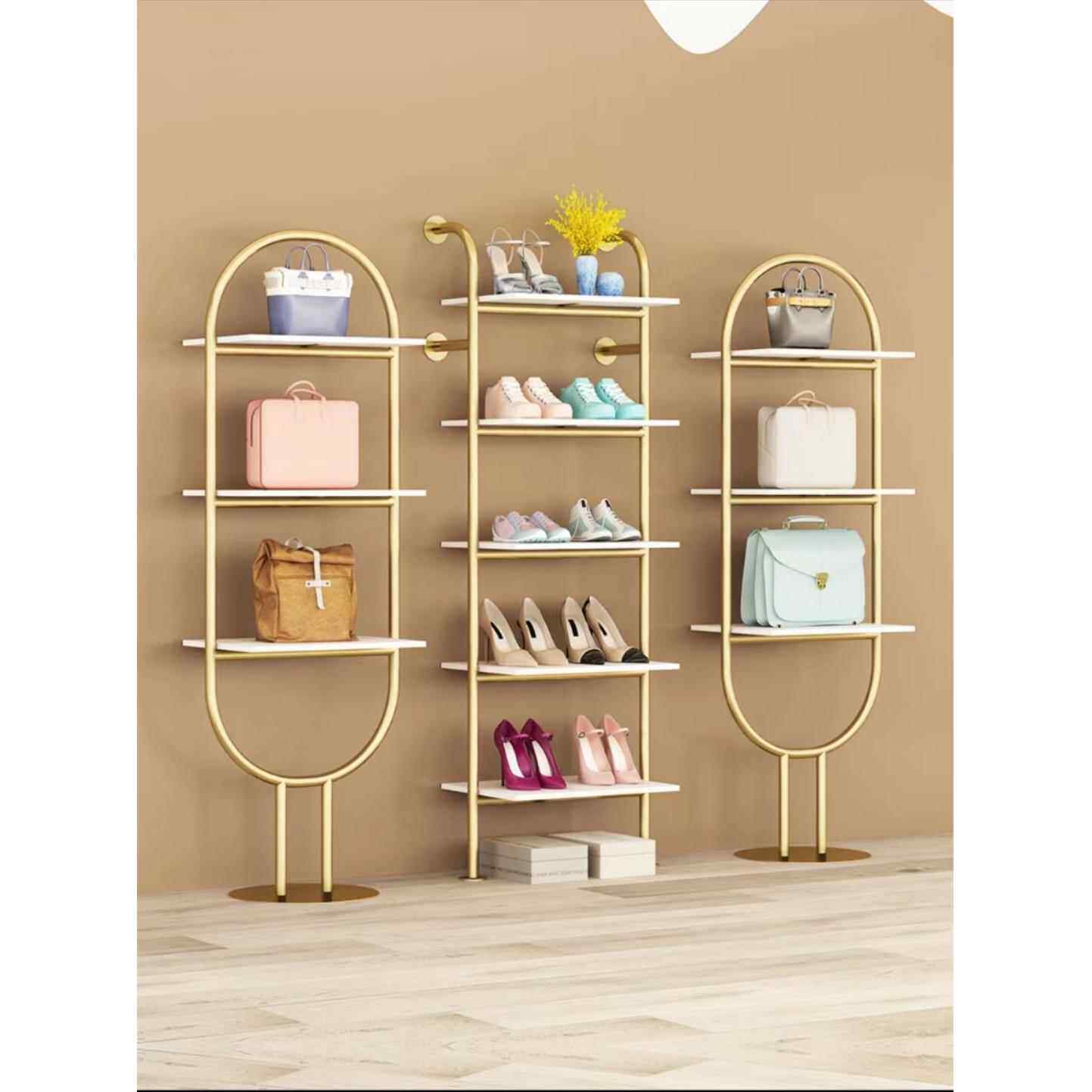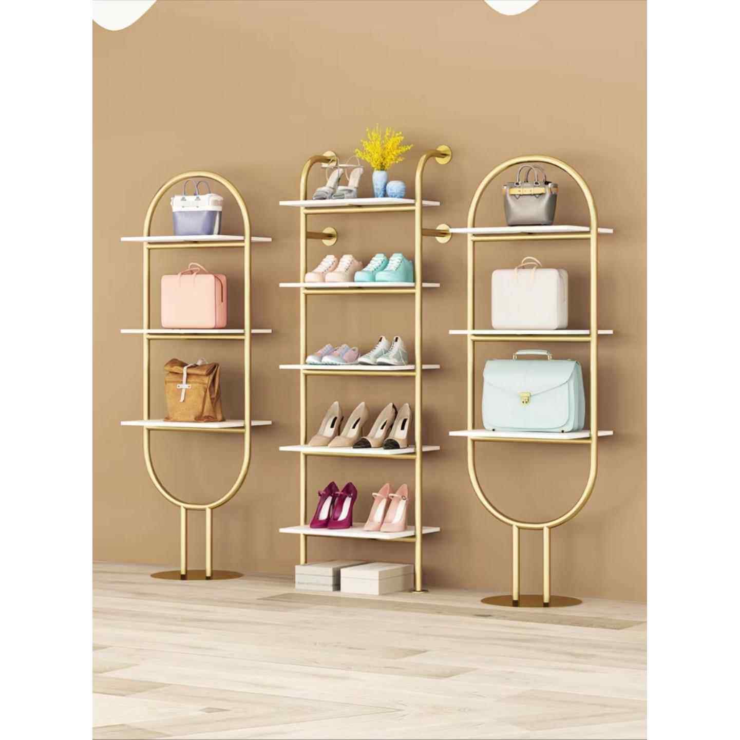 展示架网红金色货架服装店鞋包架鞋柜陈列架收纳置物架鞋店鞋架
