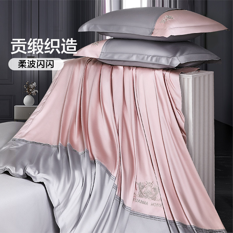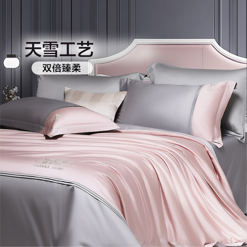 富安娜家纺140支A类双股长绒棉床上四件套纯棉轻奢床单被套床品