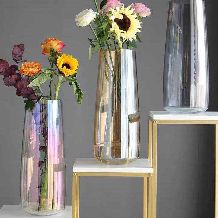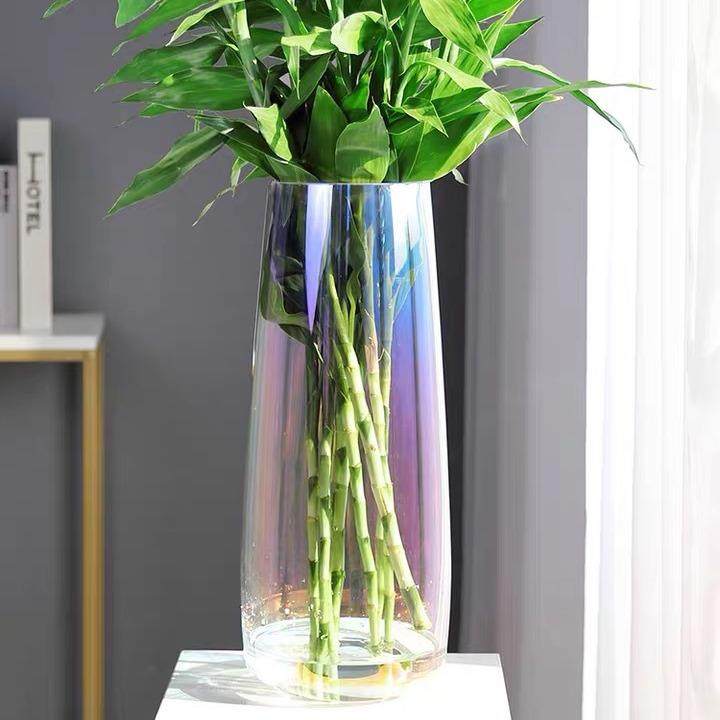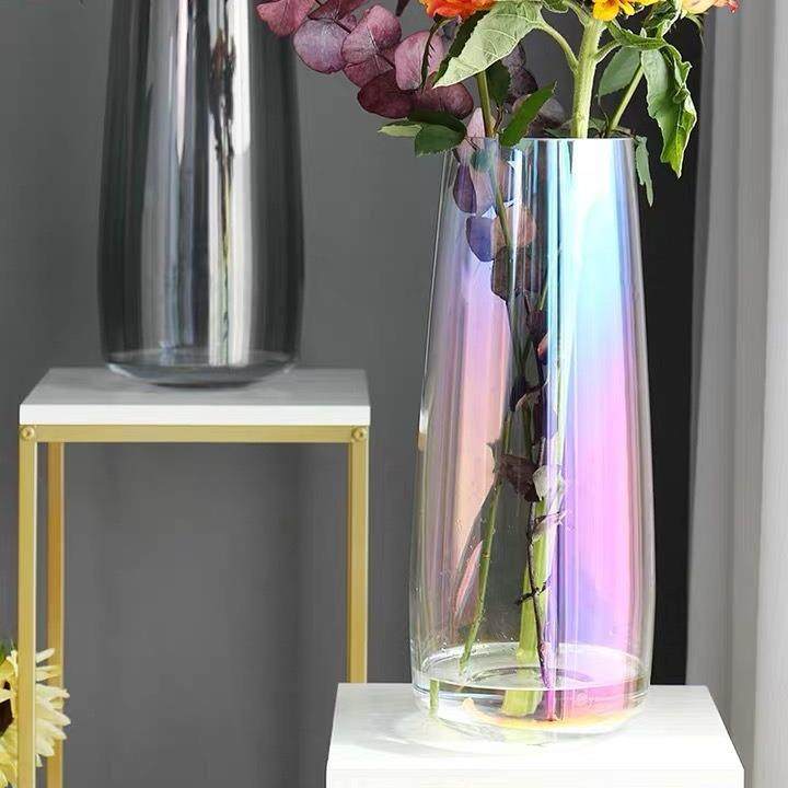 简约彩色玻璃花瓶透明百合花器客厅花盆大号水养插花摆件七彩玻璃