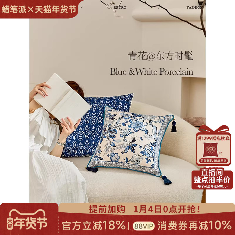 蜡笔派青花瓷抱枕法式复古风客厅沙发卧室靠垫床头夹腿靠枕睡觉