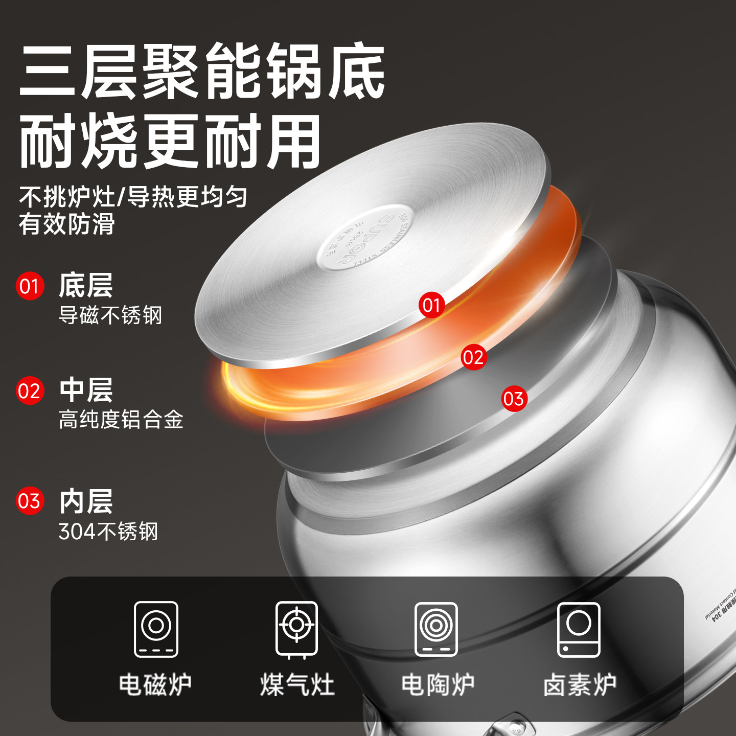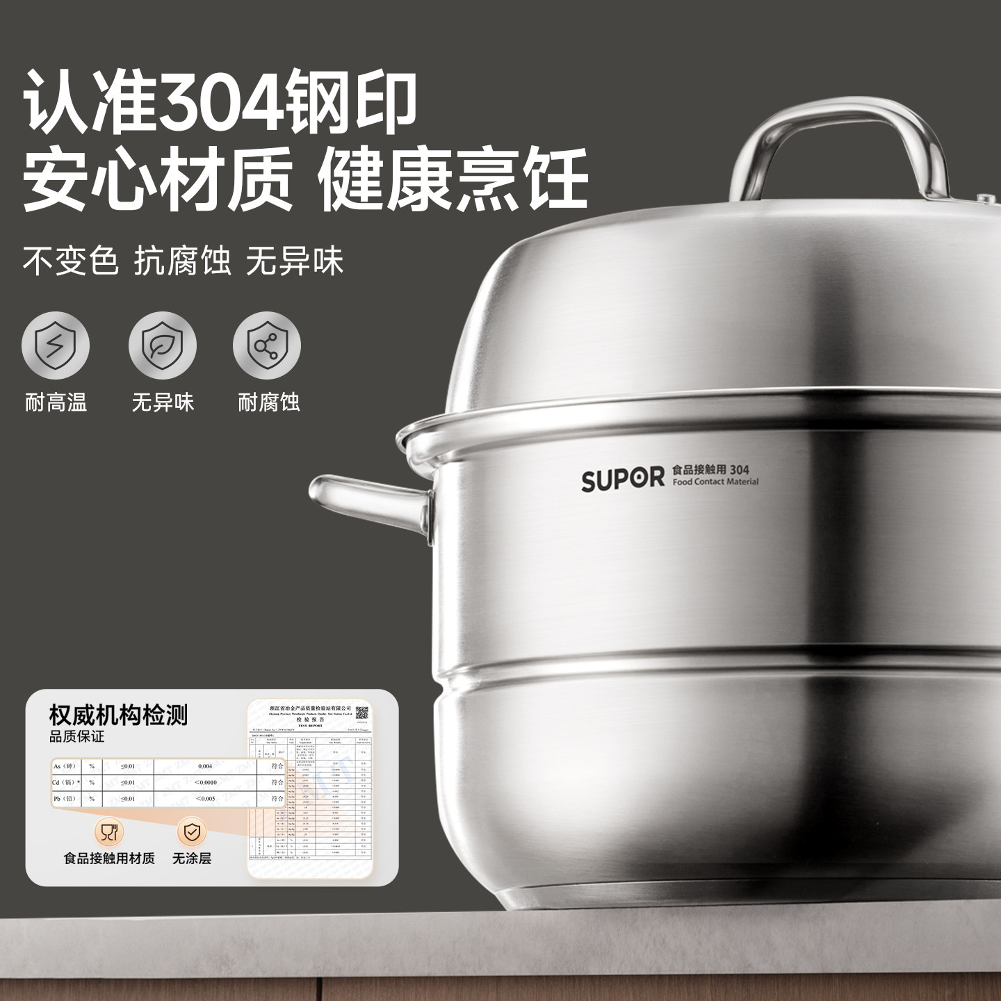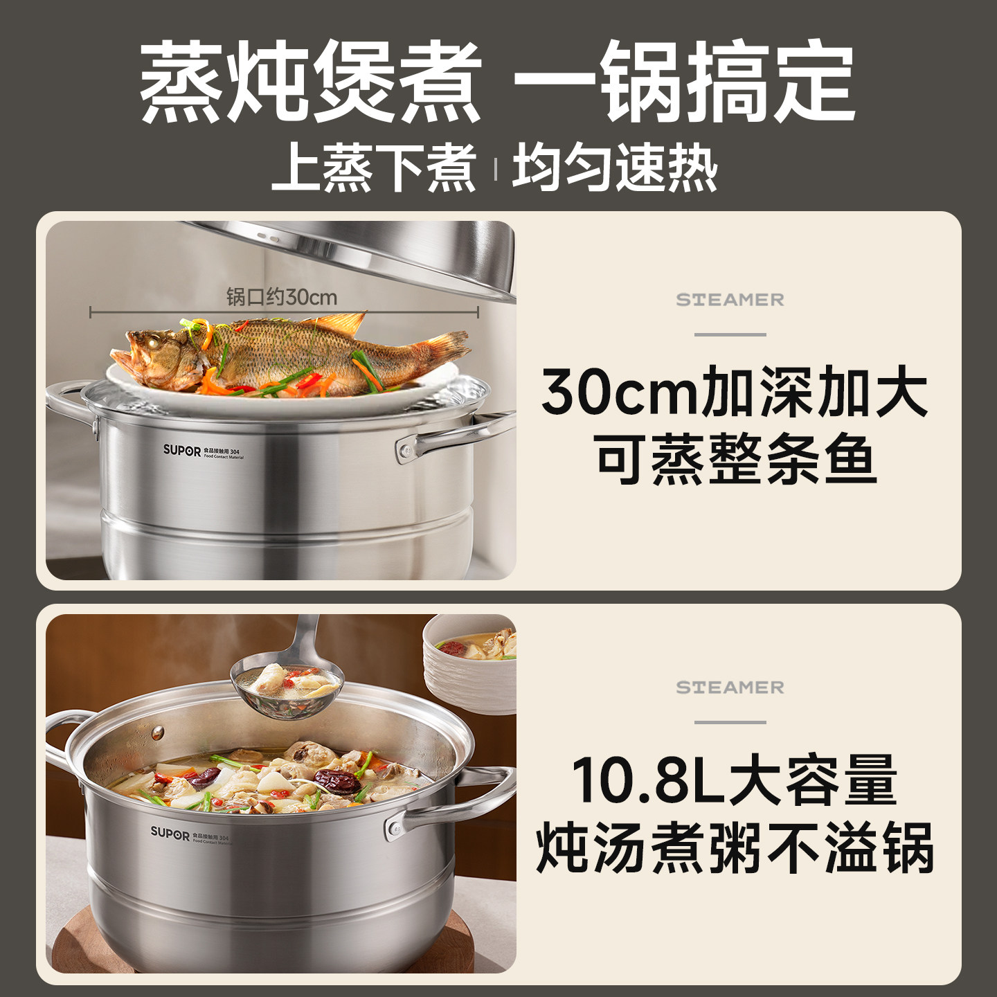 苏泊尔蒸锅家用2025新款304不锈钢加厚多层馒头蒸煮炖汤锅通用锅
