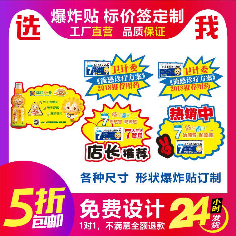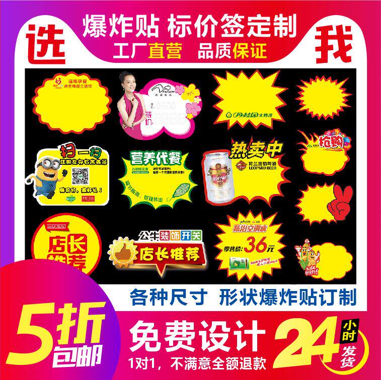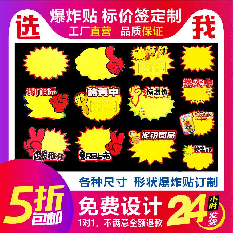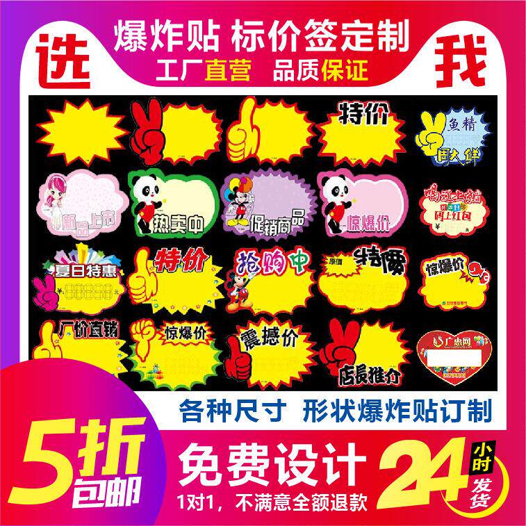 超市商场爆炸贴定做衣架卡定做印刷标价签定做POP海报爆炸花