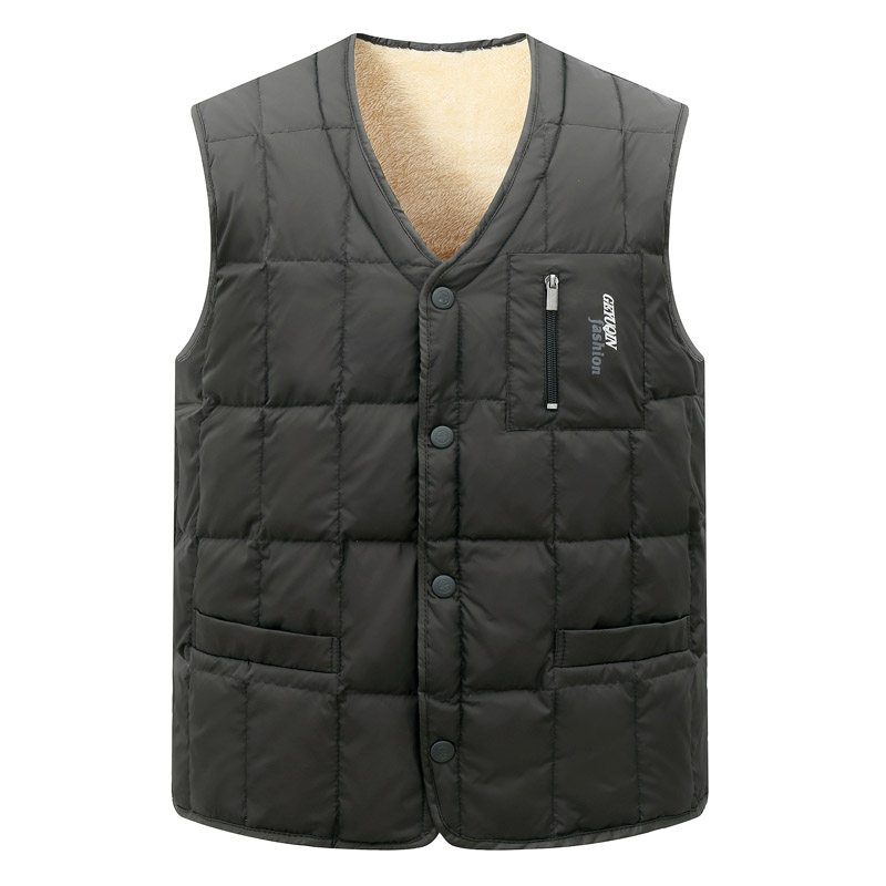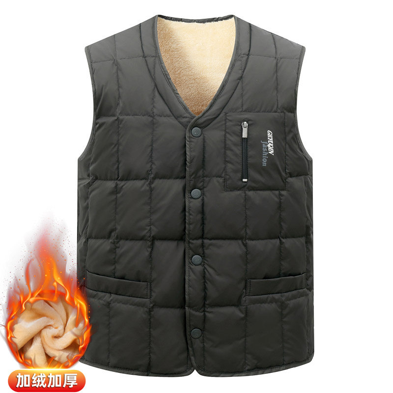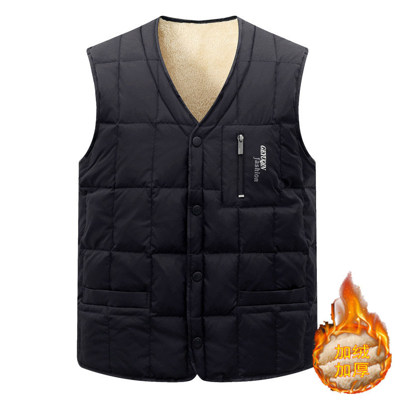 冬季羽绒马甲男士休闲大码坎肩 中老年加厚背心白鸭绒内胆爸爸装