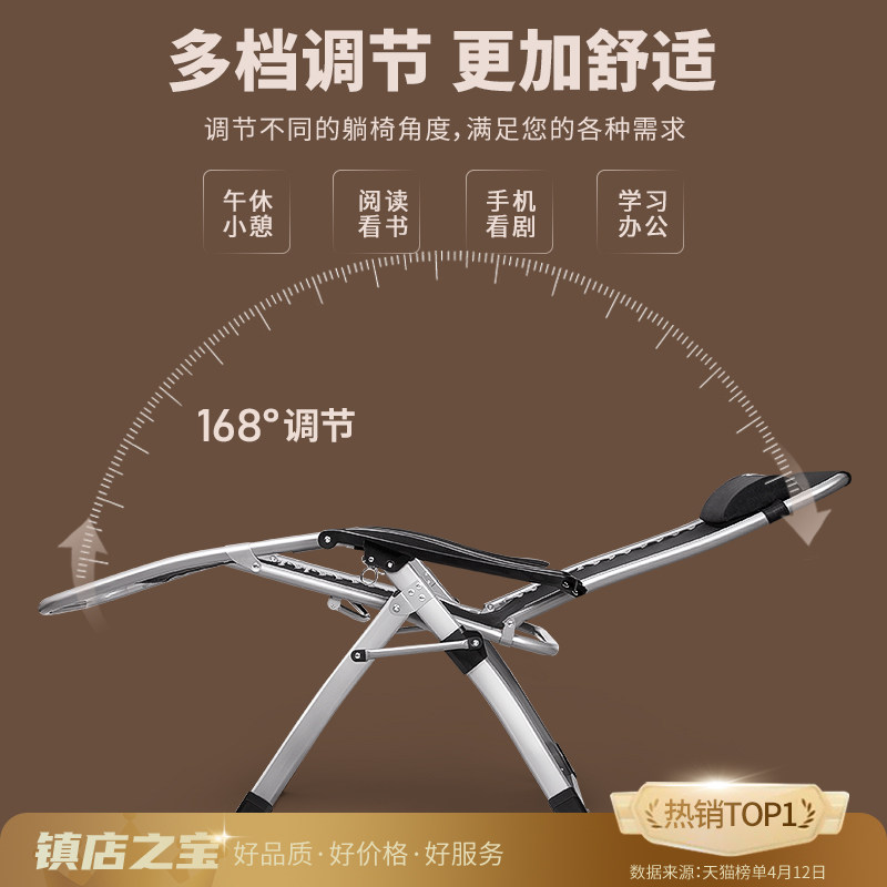 午憩宝折叠躺椅2026新款午休椅子懒人可躺家用阳台午睡靠背休闲椅