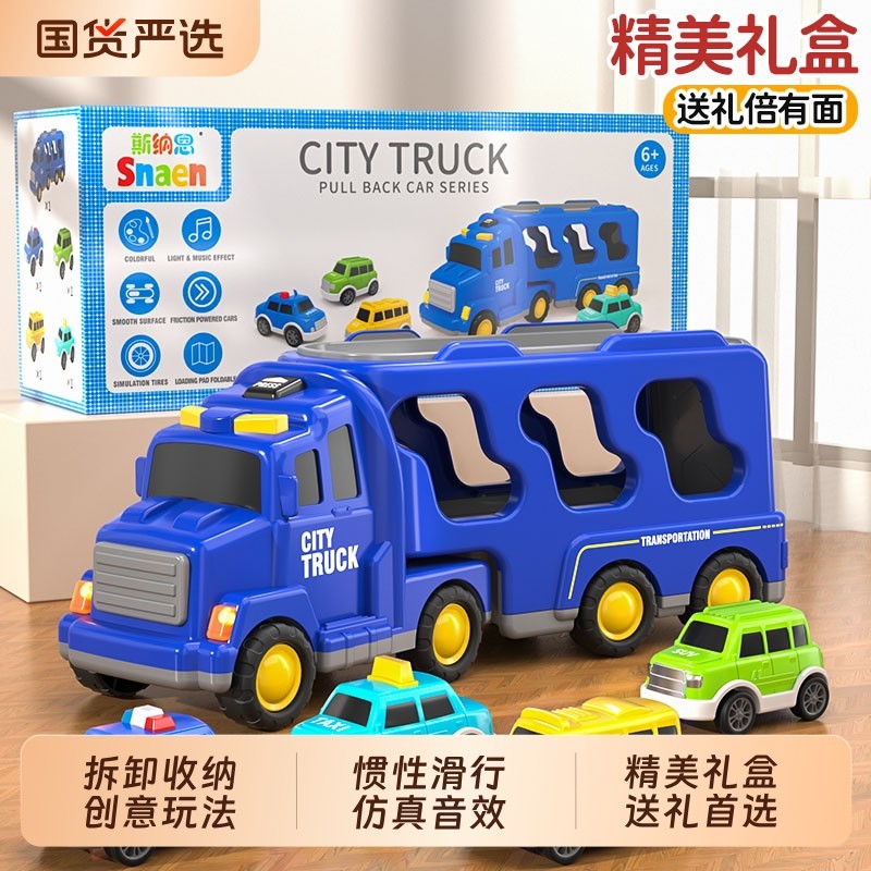 运输货柜车儿童玩具车消防警车工程仿真车模型男女孩生日礼物
