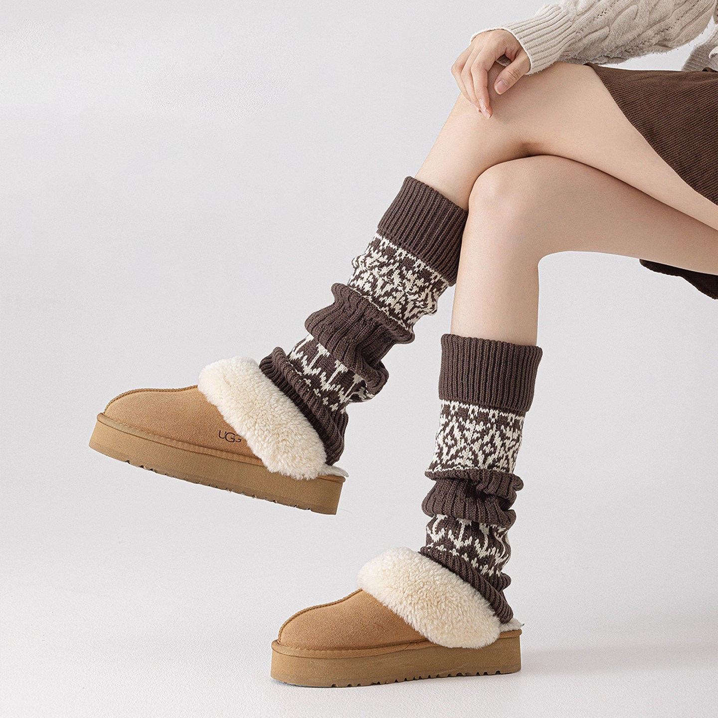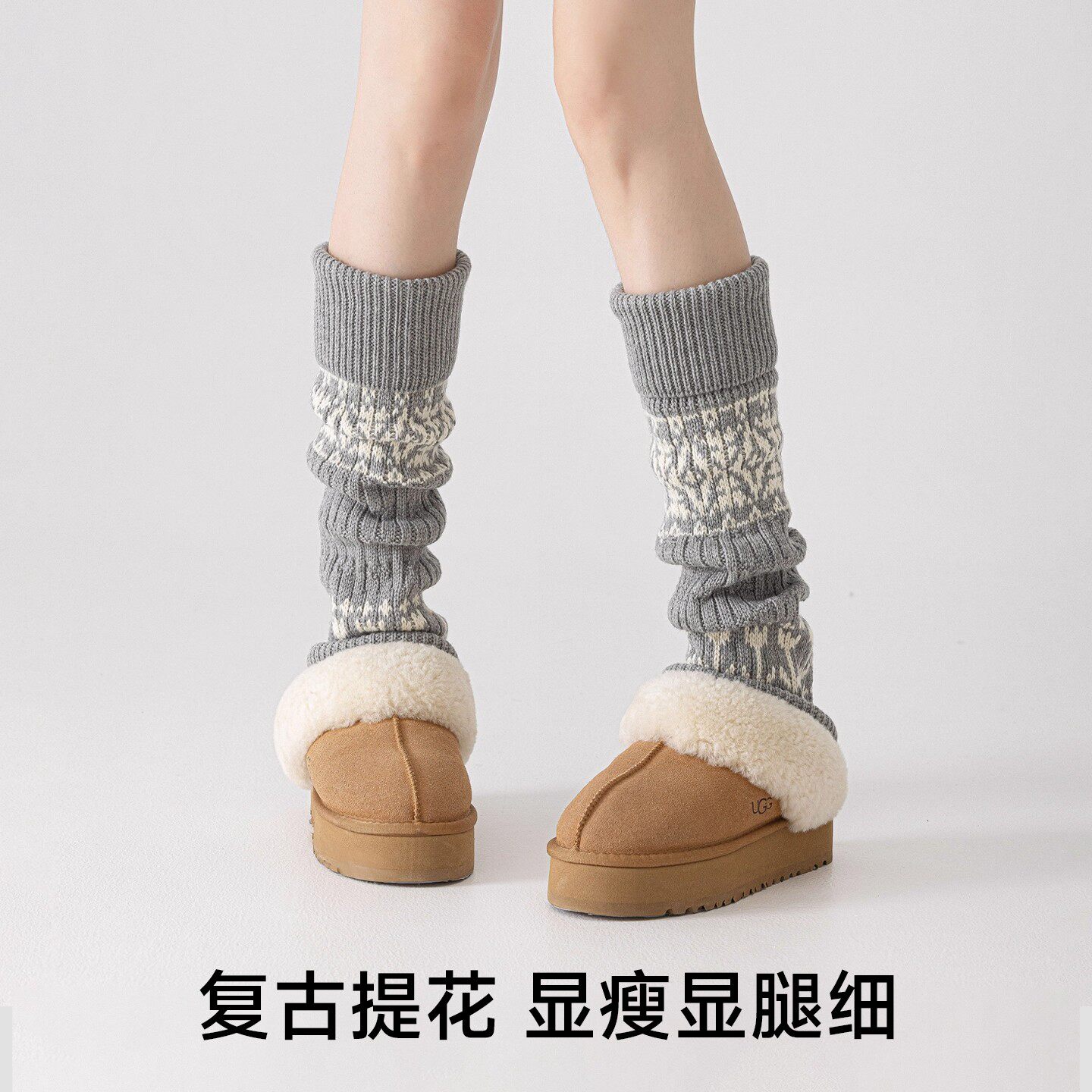 费尔岛袜套女款秋冬季中筒袜加厚保暖雪地靴复古堆堆袜针织小腿套