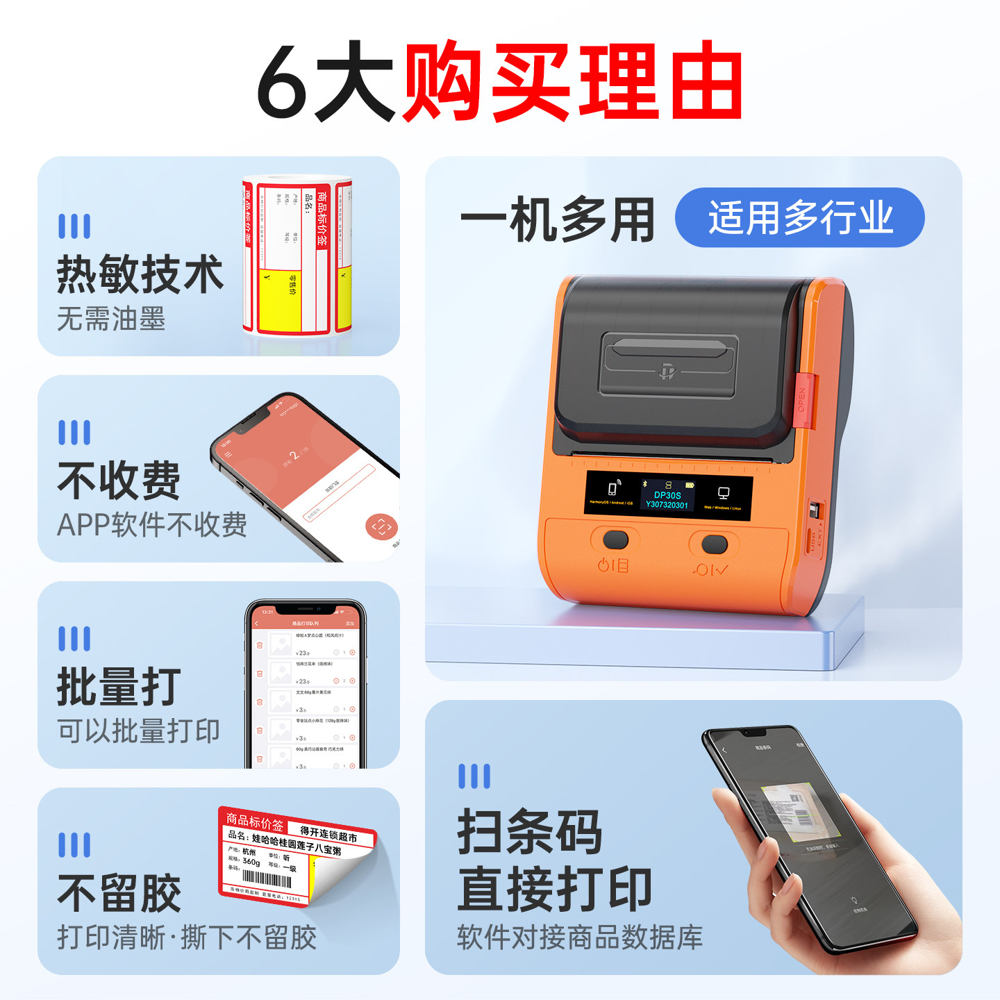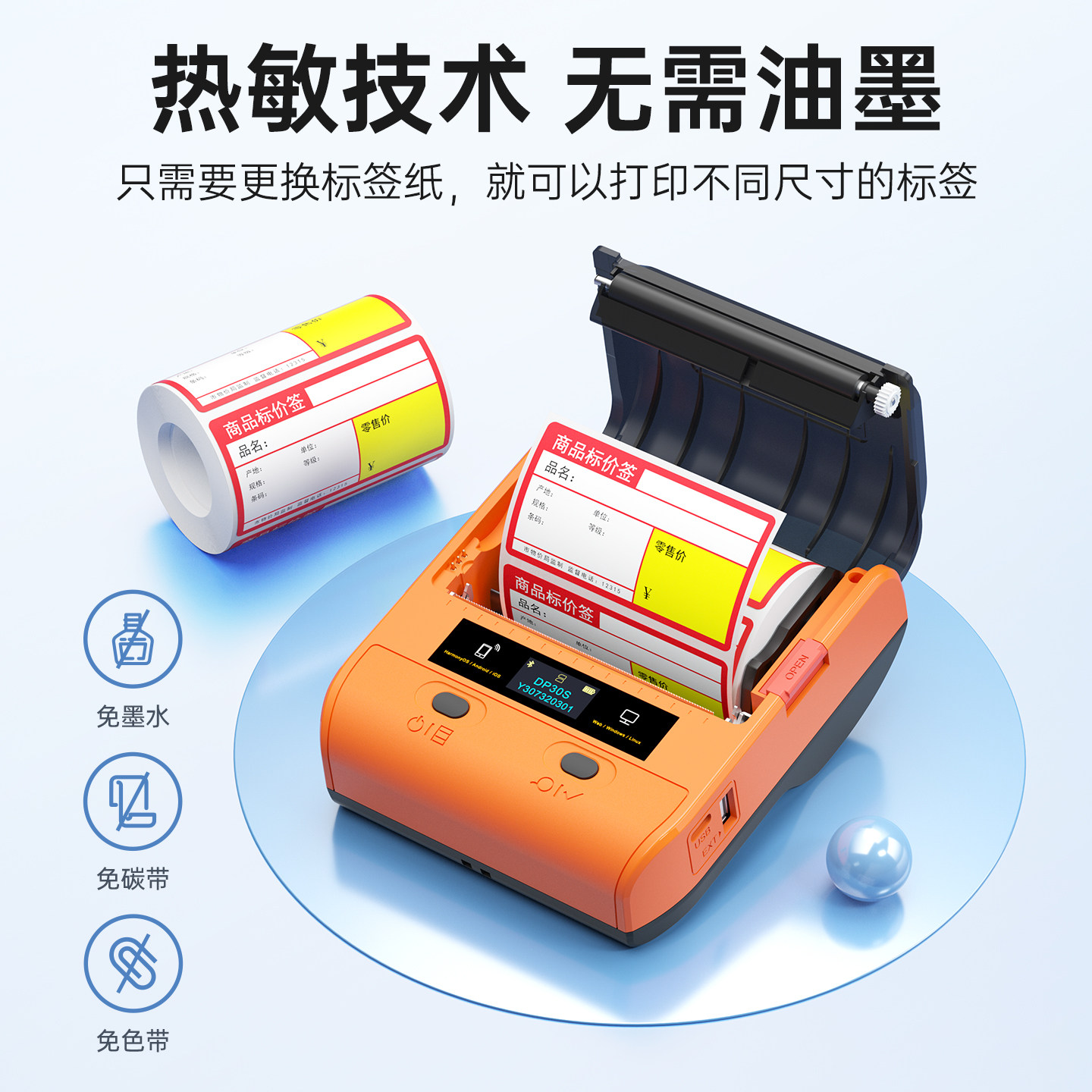 无需油墨 蓝牙连接 手机编辑 APP扫码打印