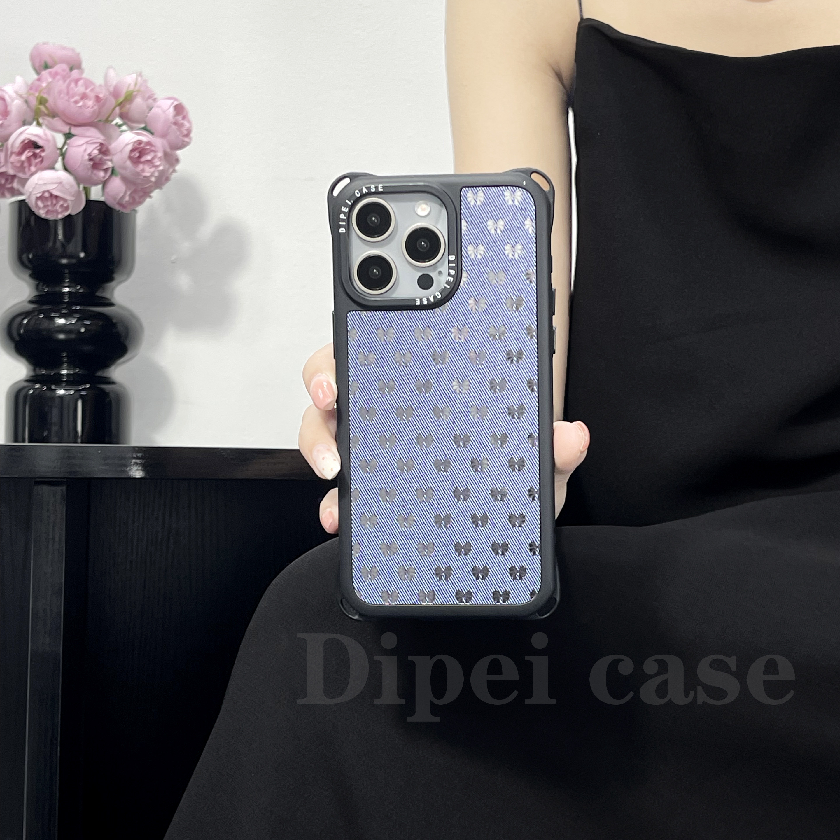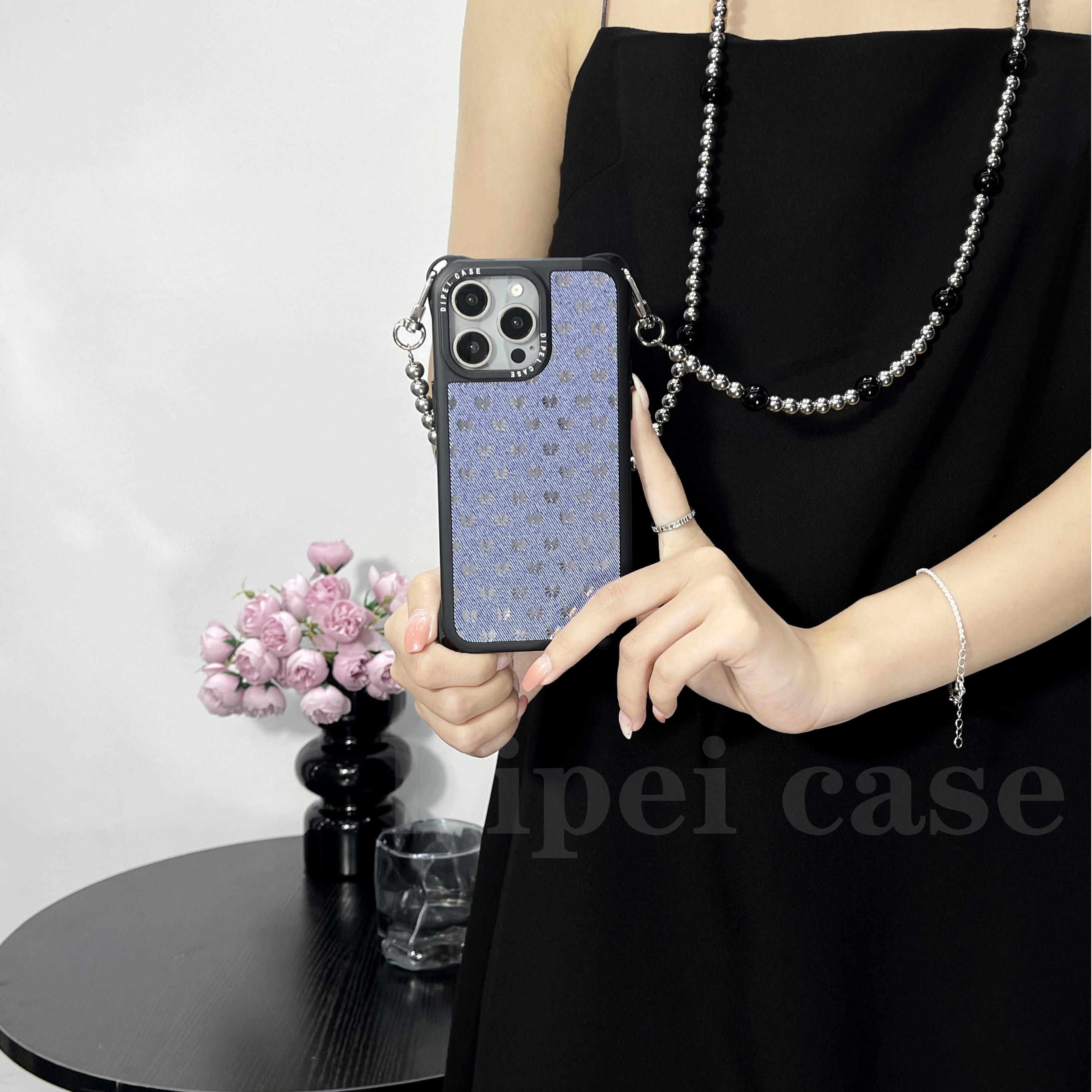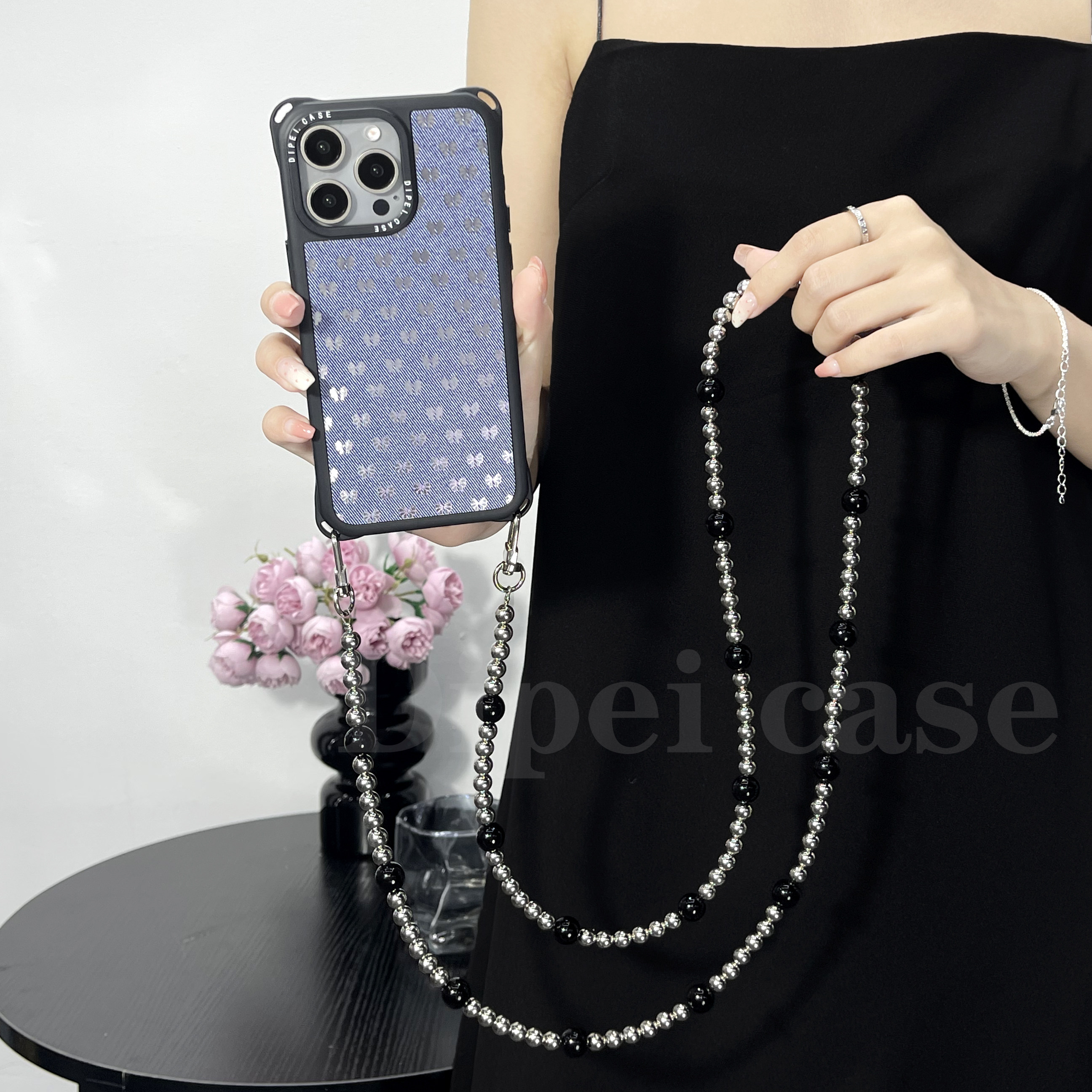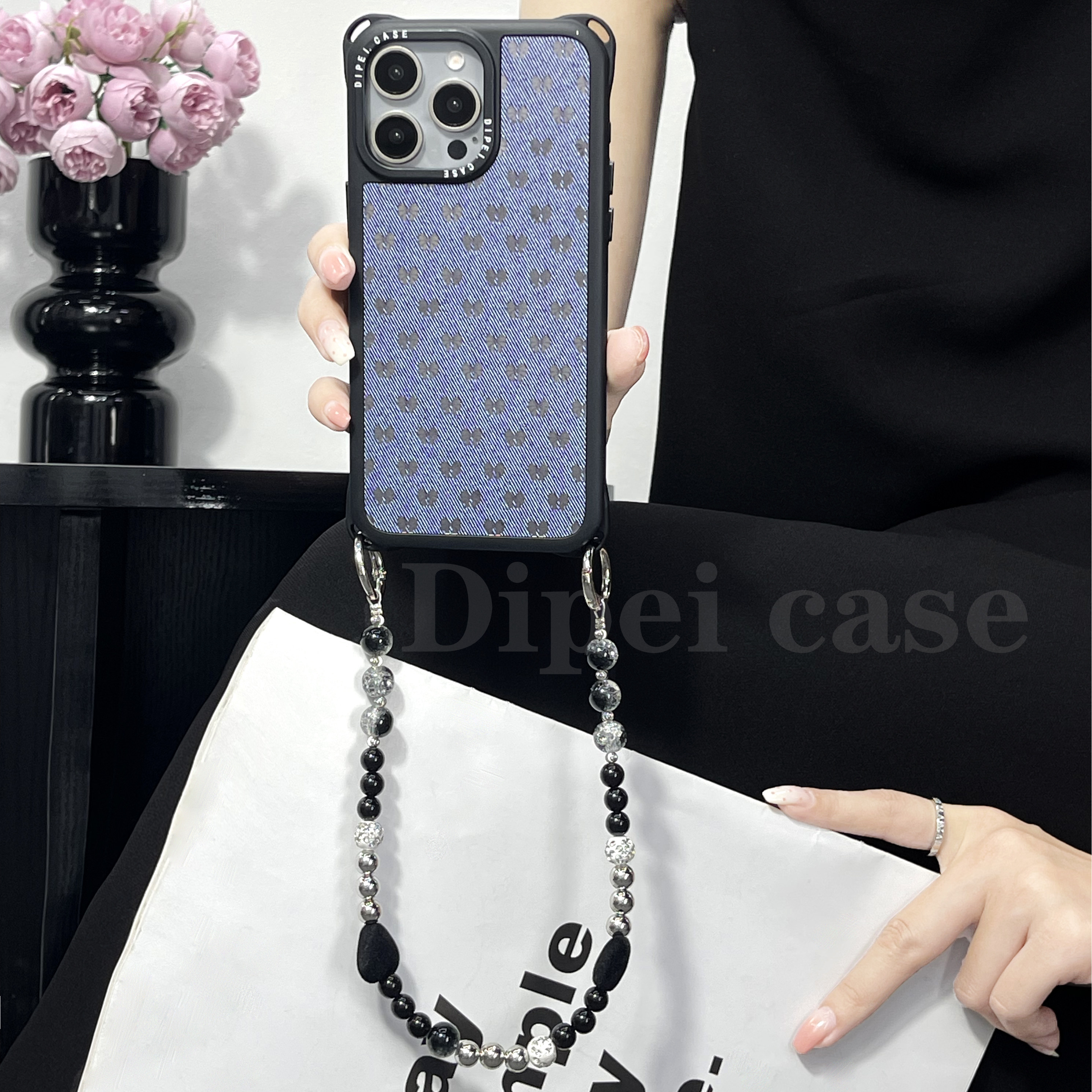 大牌风牛仔纹链条手机壳四角带孔手提斜挎适用iPhone苹果16Promax/14/13华为Pura70mate60/nova13小米15ultra