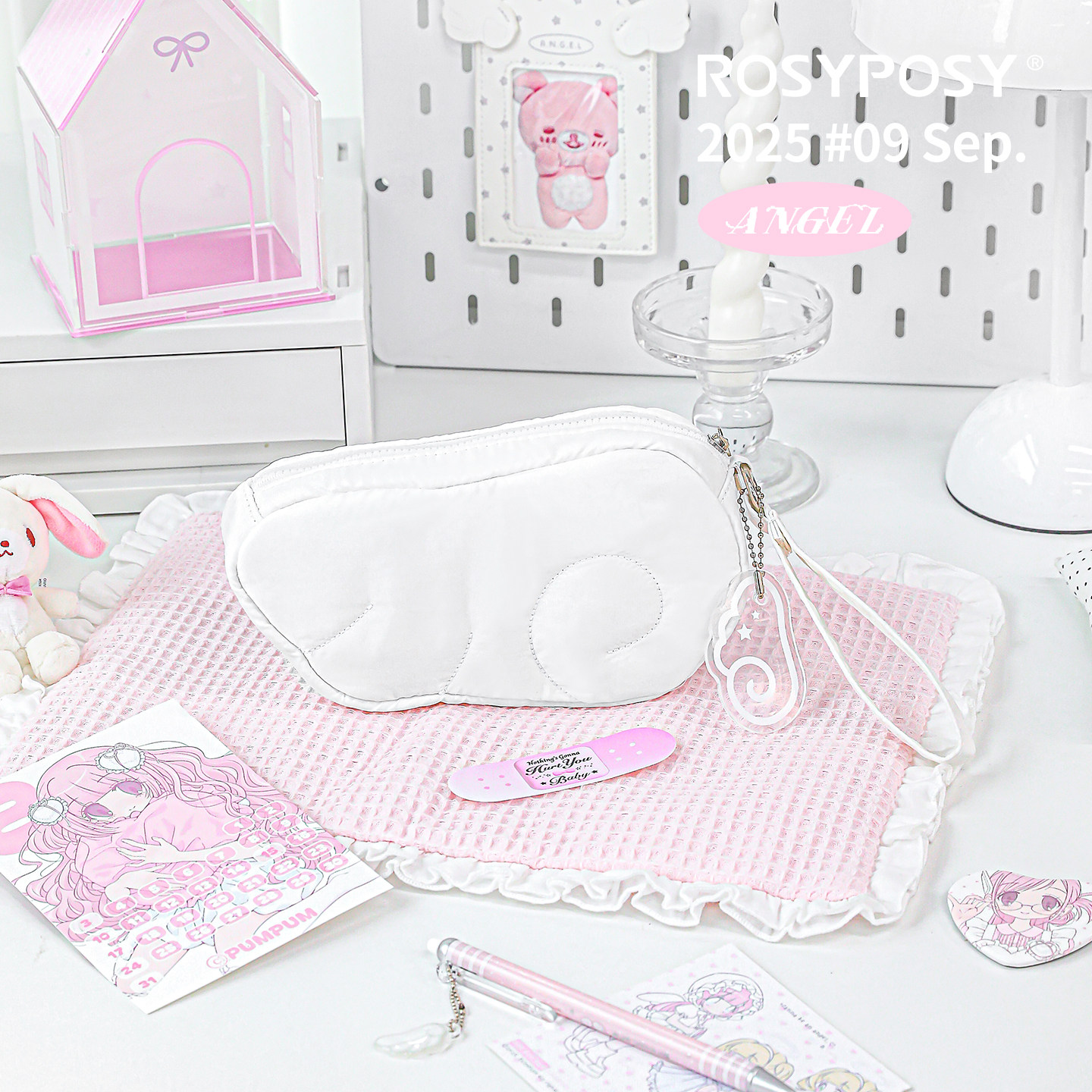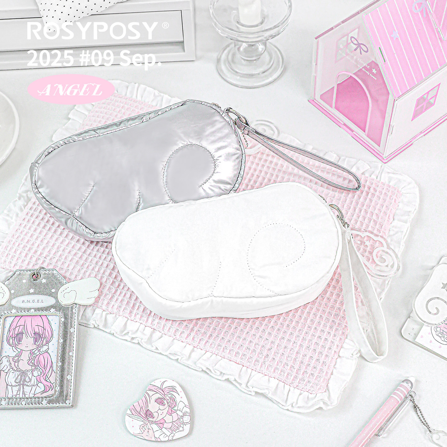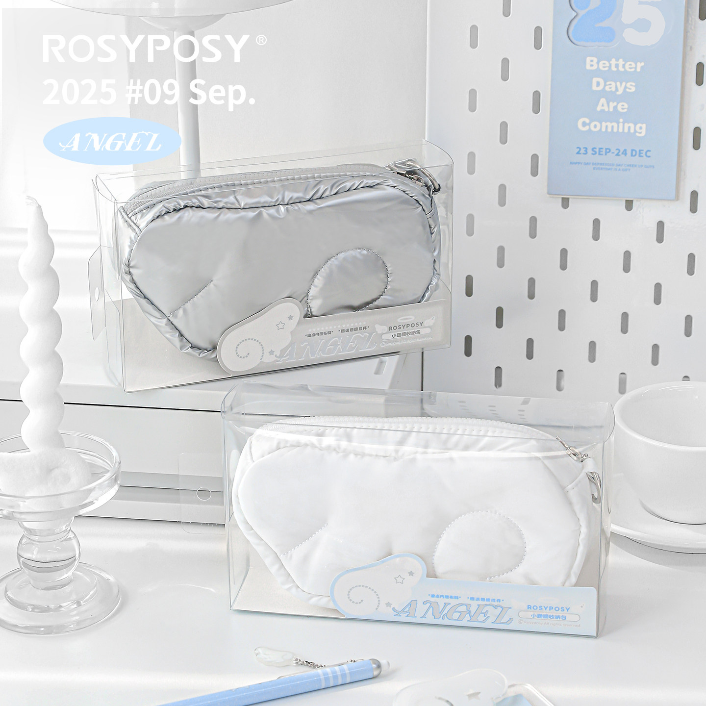 「韩感波点内衬!翅膀笔袋」Rosyposy柔设天使c充棉化妆包便携ins