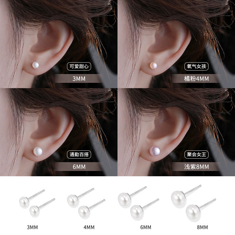 S999纯银针天然淡水珍珠耳钉设计感小众轻奢高级耳骨睡觉免摘耳饰