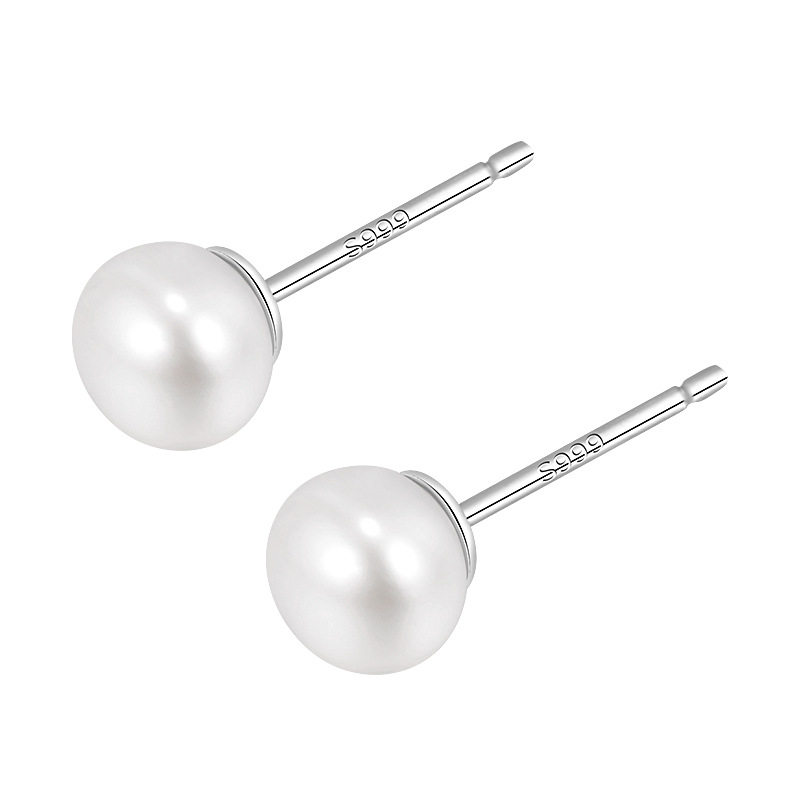s925纯银天然淡水珍珠耳钉扁圆韩国女可爱银饰品耳饰品气质耳环