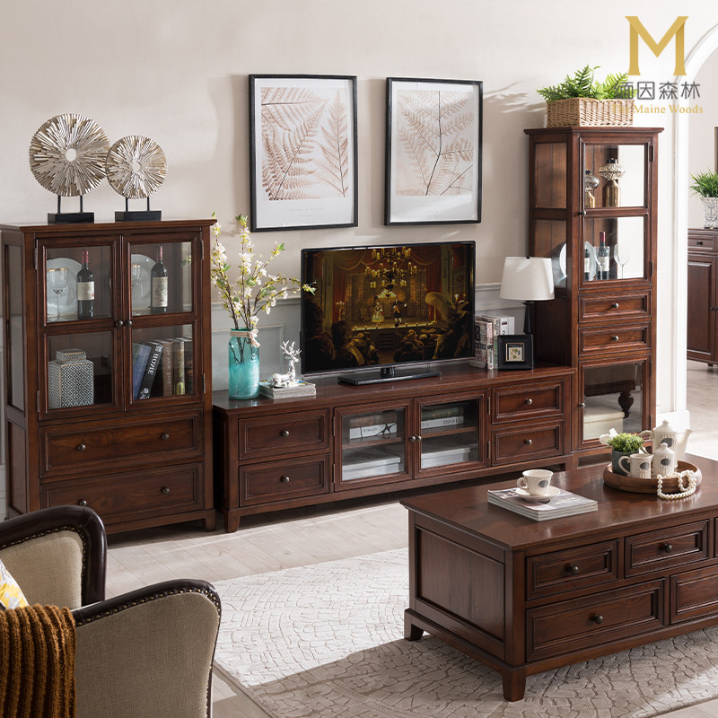 美式电视柜实木客厅全实木地柜简美电视机柜白蜡木缅因森林家具