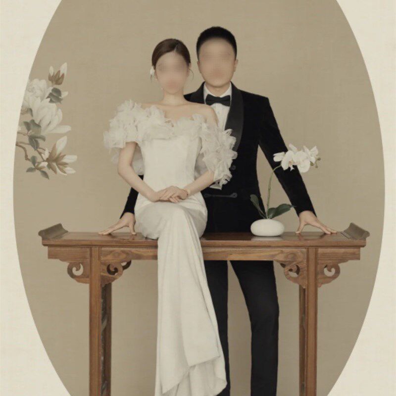 古风工笔画中式秀禾婚纱摄影道具影楼拍照民国风主题实木桌子茶几