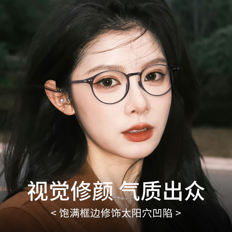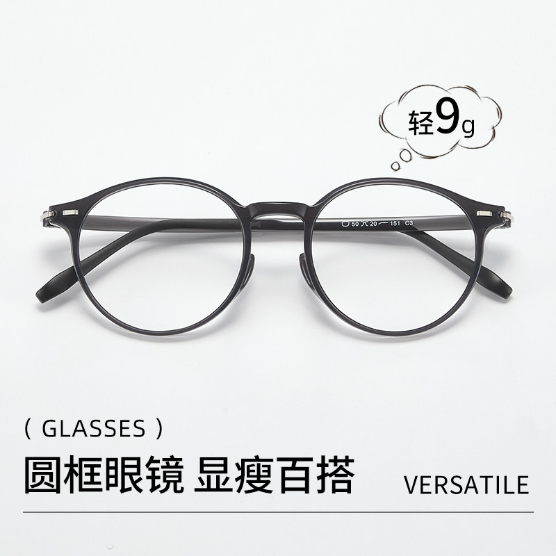 纯钛圆框近视眼镜蔡司防蓝光女可配度数素颜文艺细边眼镜框镜架男