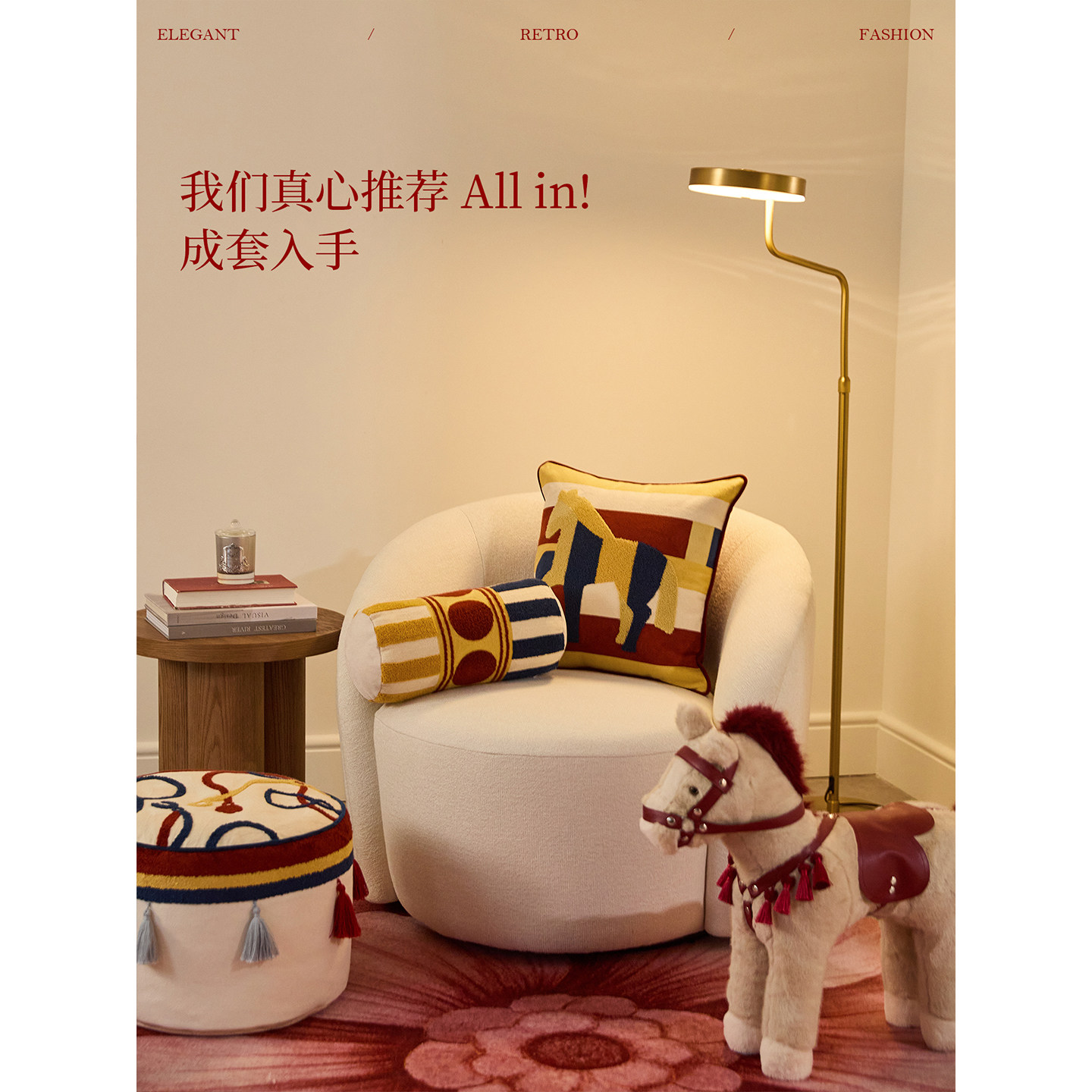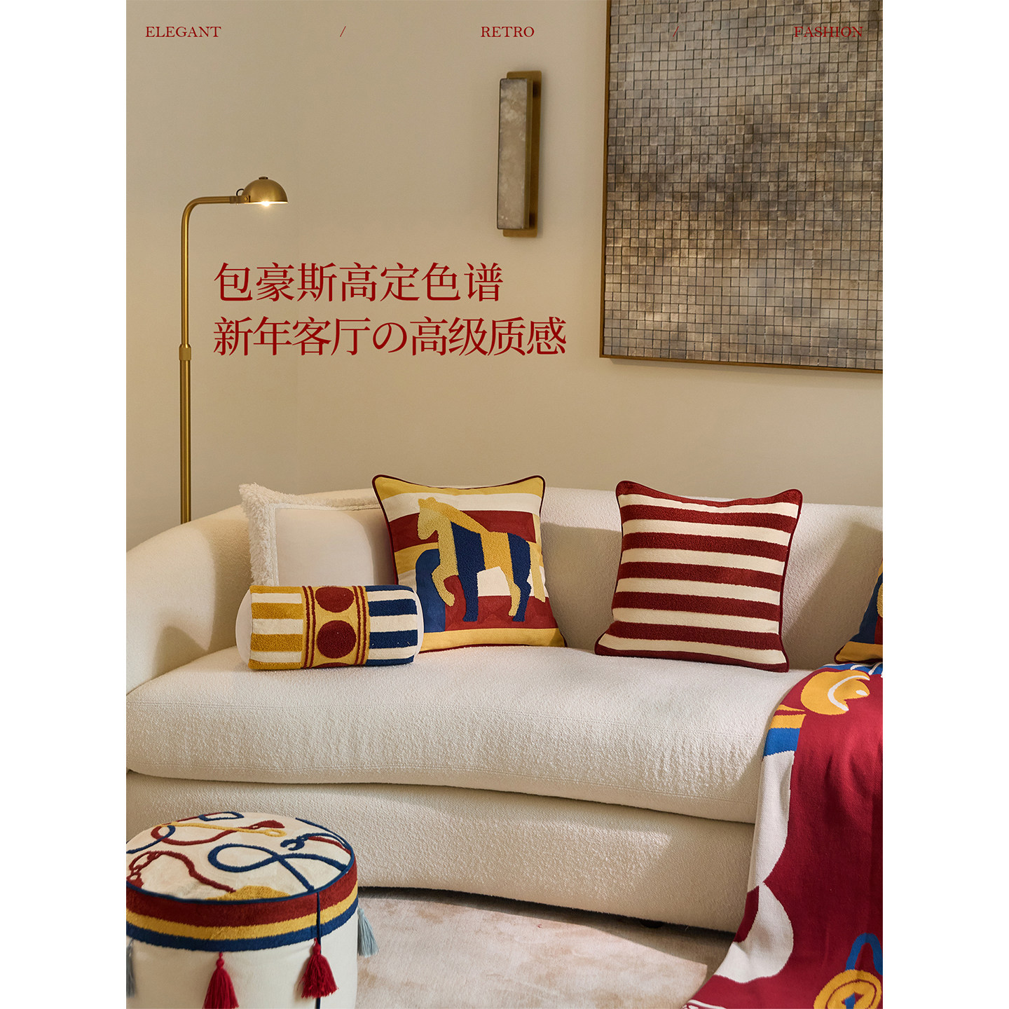 【新年礼物】蜡笔派「马承喜乐」马迹抱枕轻奢红色沙发靠垫新款O
