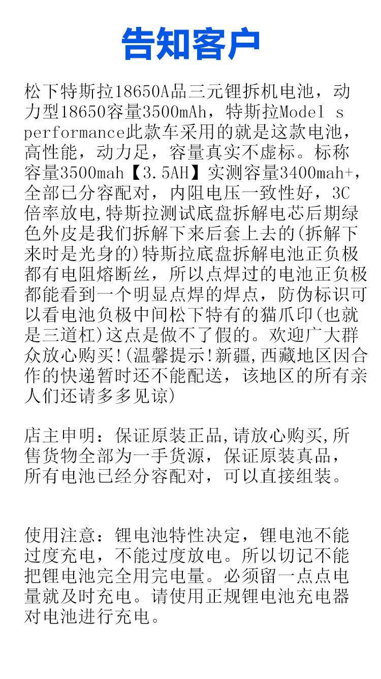 松下特斯拉18650拆机动力锂电池3400毫安3C放电动车电动工具3.7V