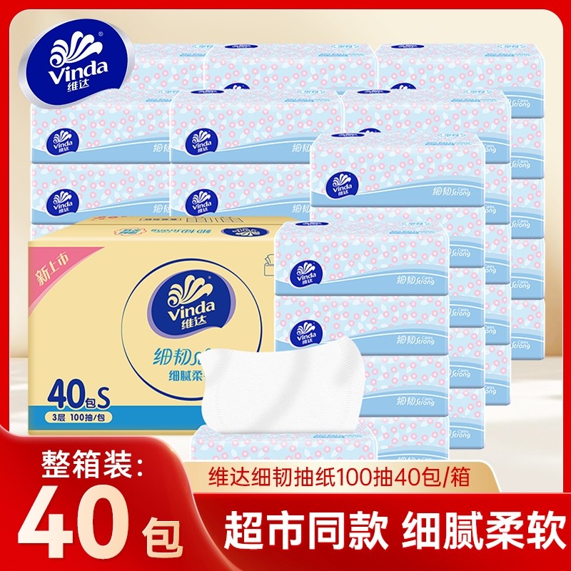 维达细韧抽纸3层100抽40包家用餐巾纸面巾纸整箱大包擦手卫生纸巾