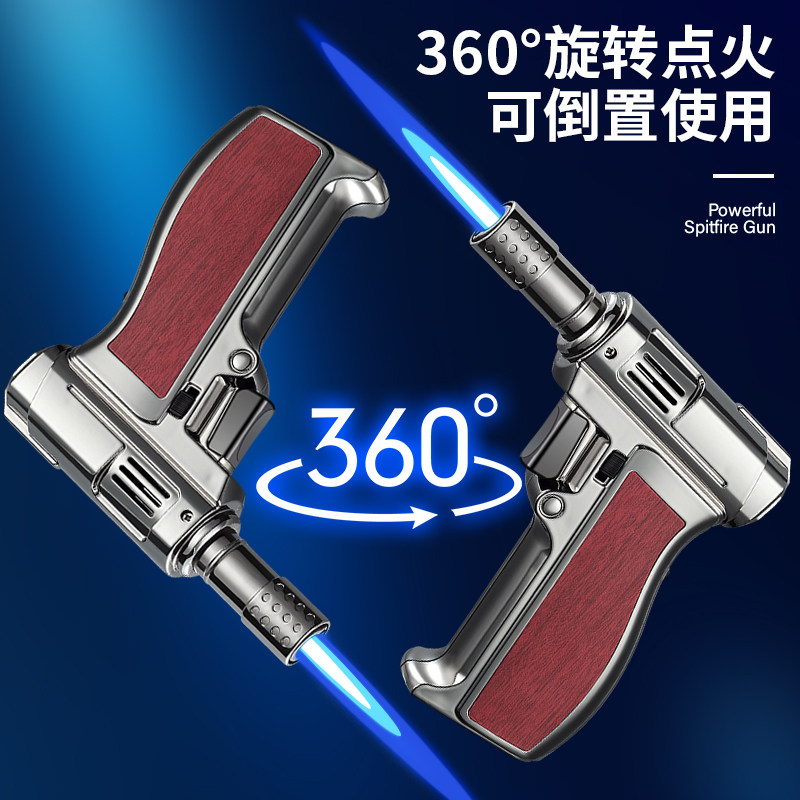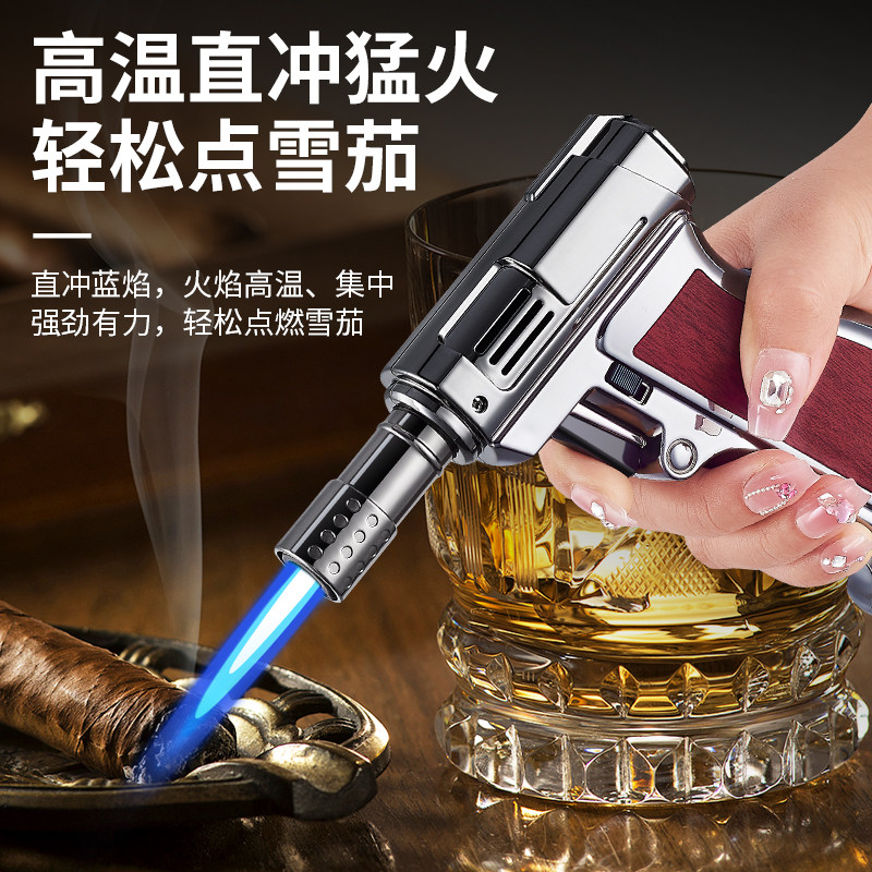 手枪充气打火机防风户外直冲点火器点艾灸焊枪喷火枪雪茄专用气体