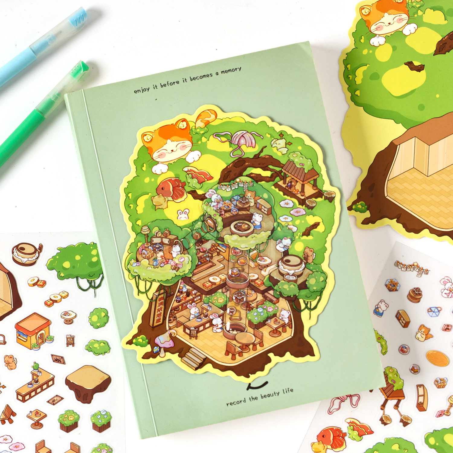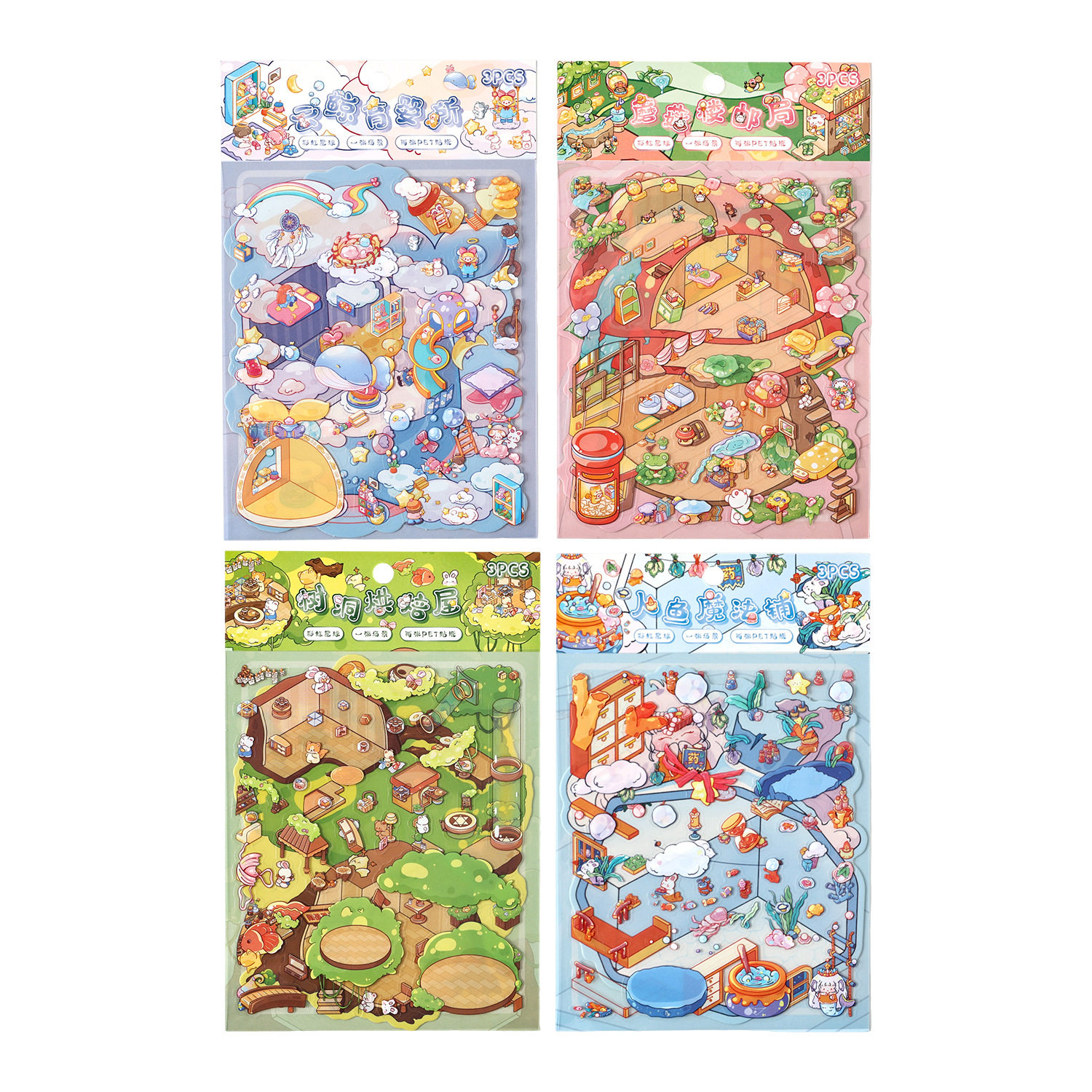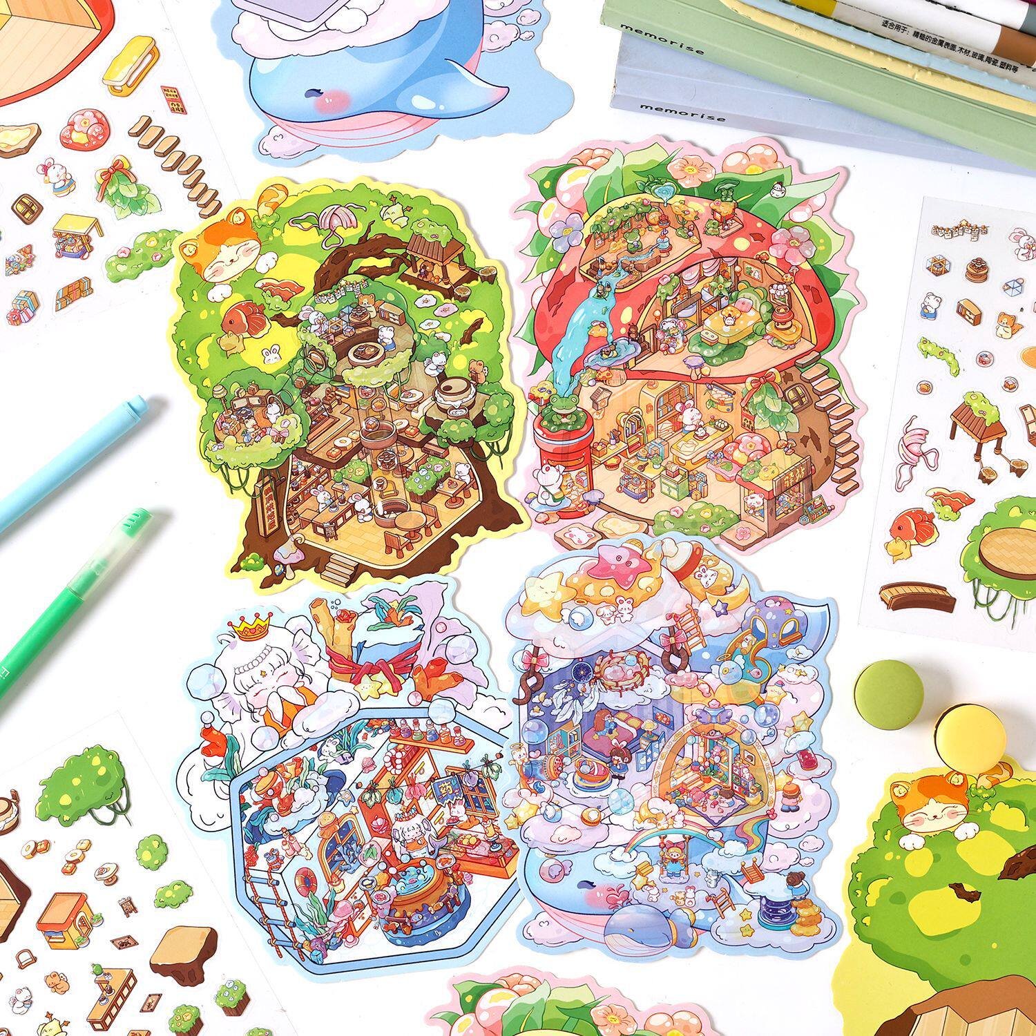 新款筑梦3d立体造景贴纸微缩场景合集本 大号版diy手工小屋手账贴儿童益智玩具素材贴画解压大版3D手账装饰贴