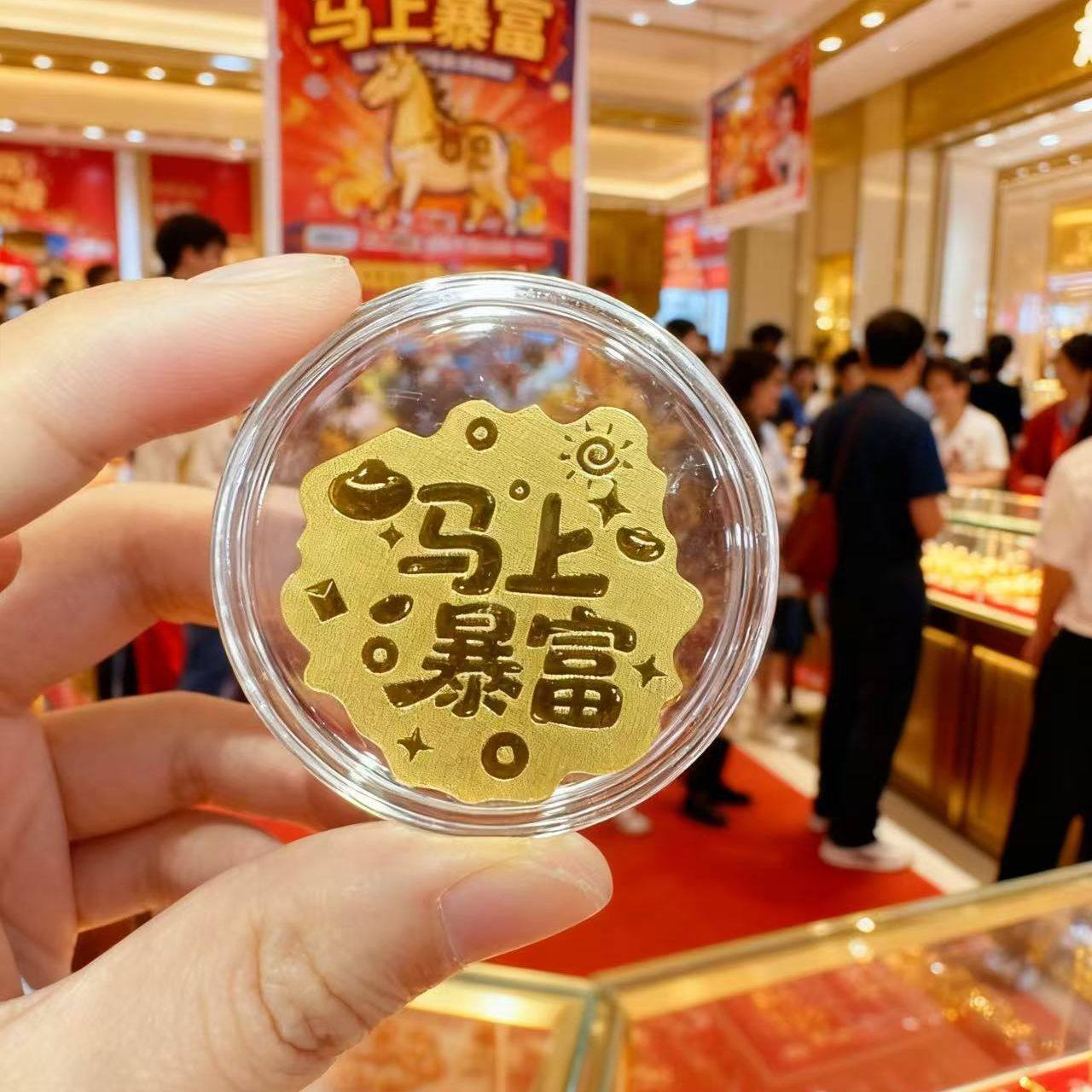 官方足金999公主请发财暴富招财黄金金片真金财神手机贴财库贴纸g