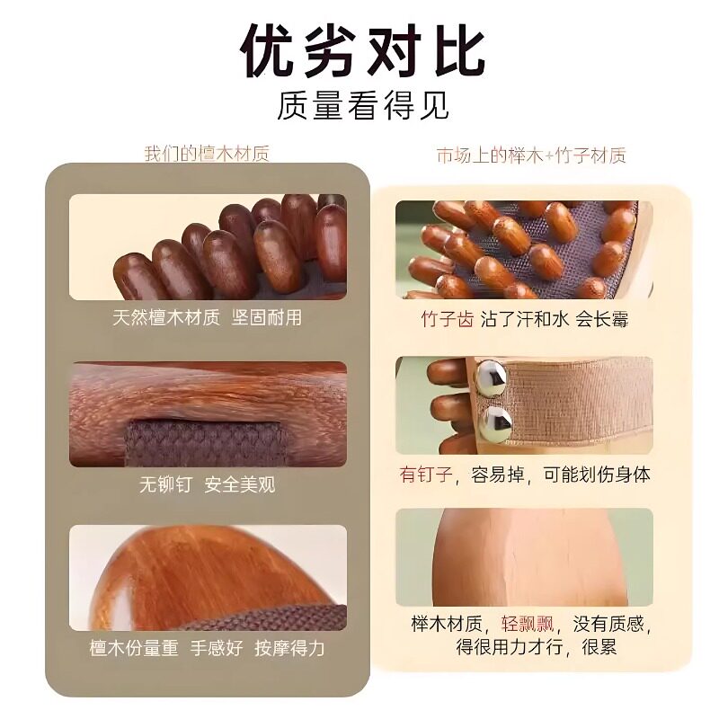 正宗檀木带脉经络刷梳揉肚子肩颈疏通缓解揉腿刮痧梳子