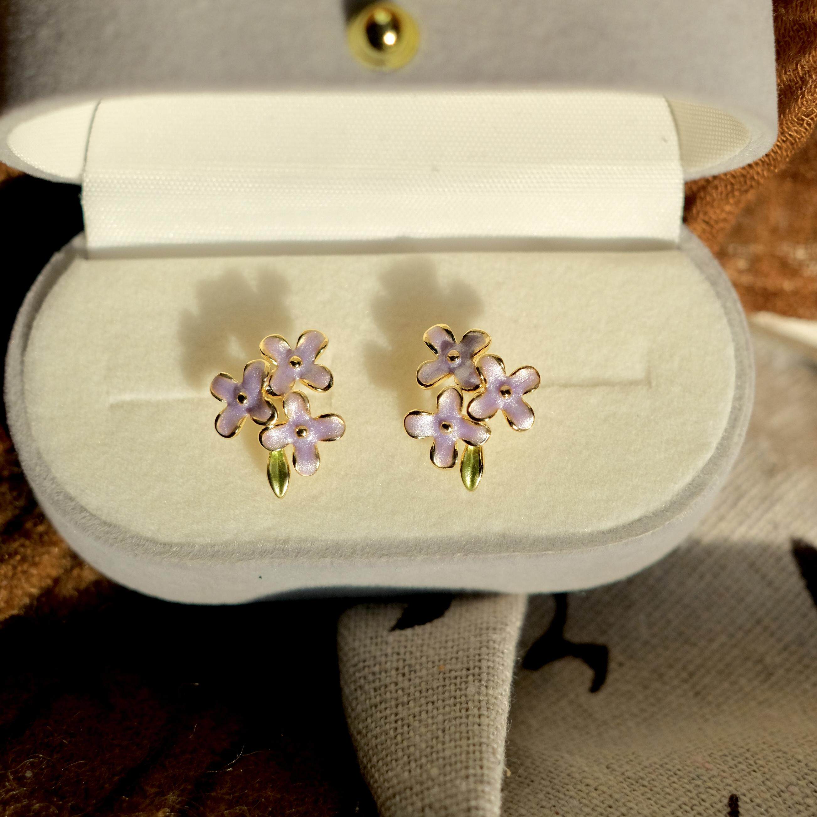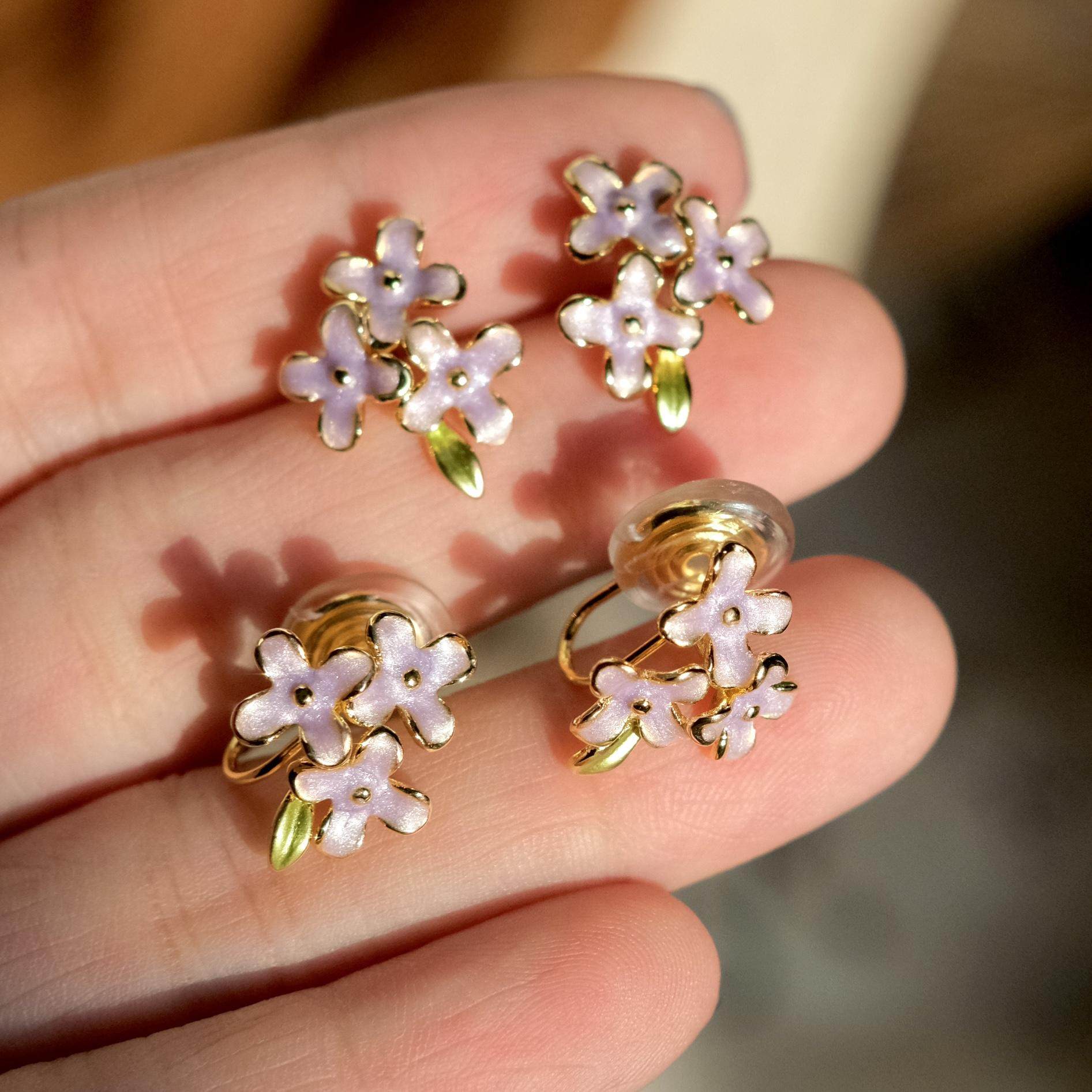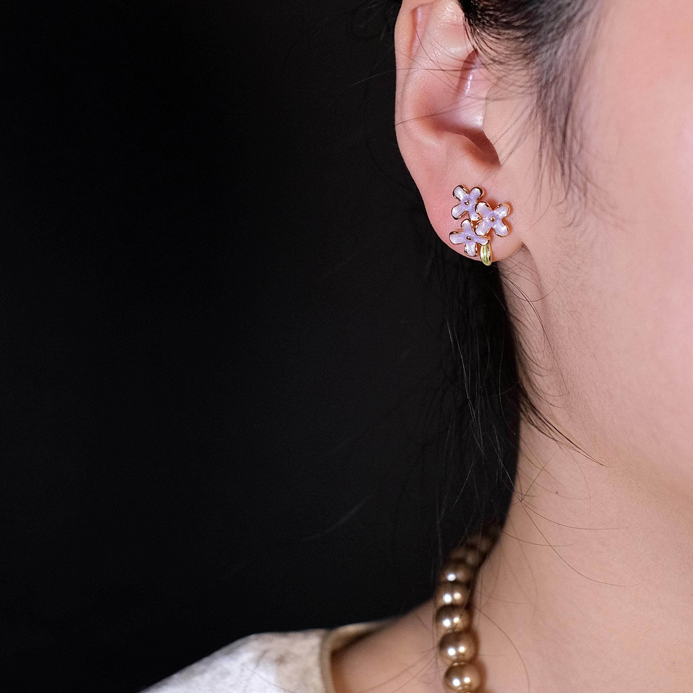 《烟烟紫》超仙森系甜美温柔淡紫色珐琅滴釉花朵耳钉耳夹无耳洞女