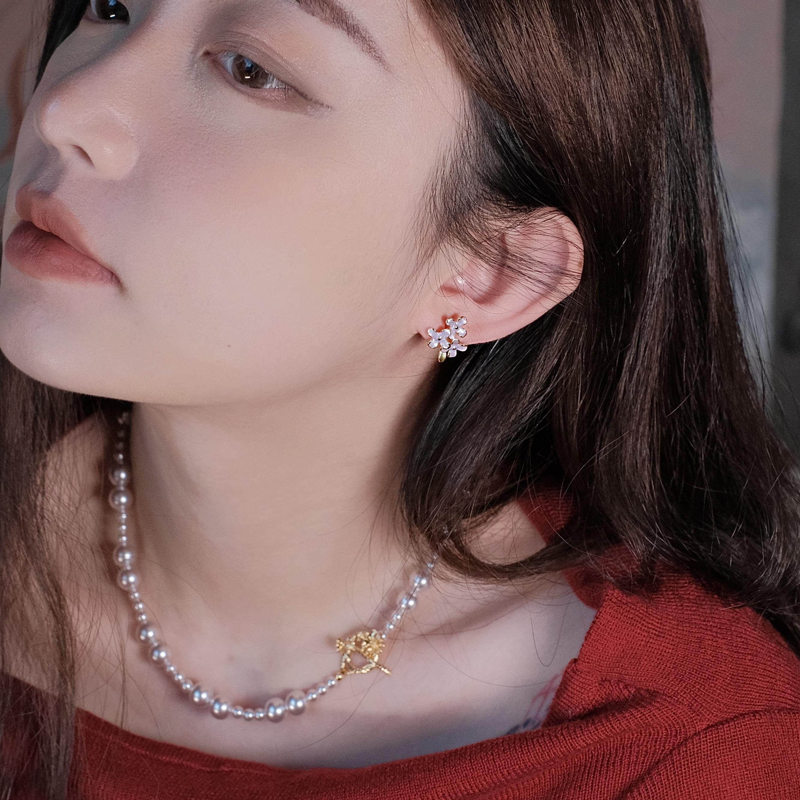 美拉德色珍珠耳扣女精致简约洗睡免摘耳饰气质百搭小众设计感耳环