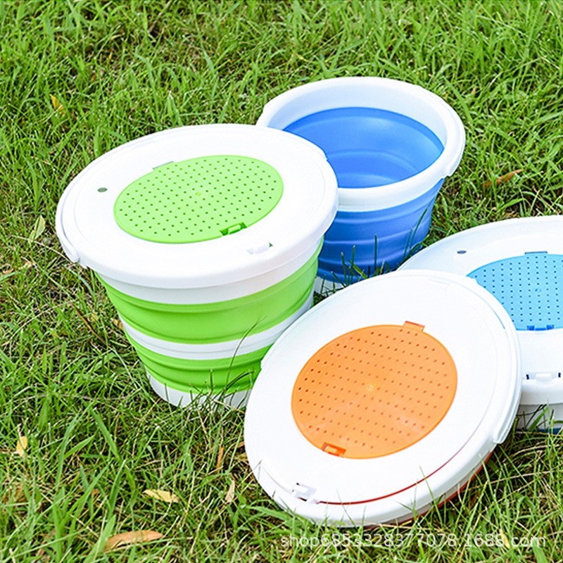 新款折叠水桶钓鱼桶带双盖单环圈可拆卸打水洗车孩童沙滩抓虾赶海