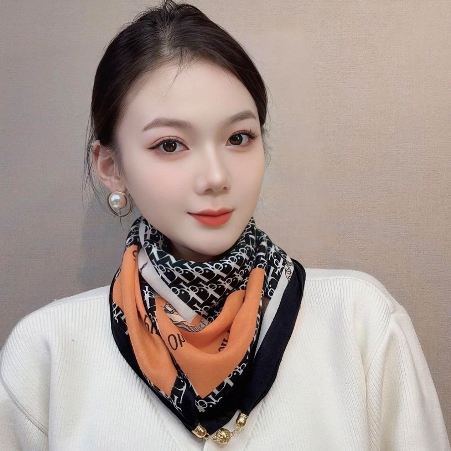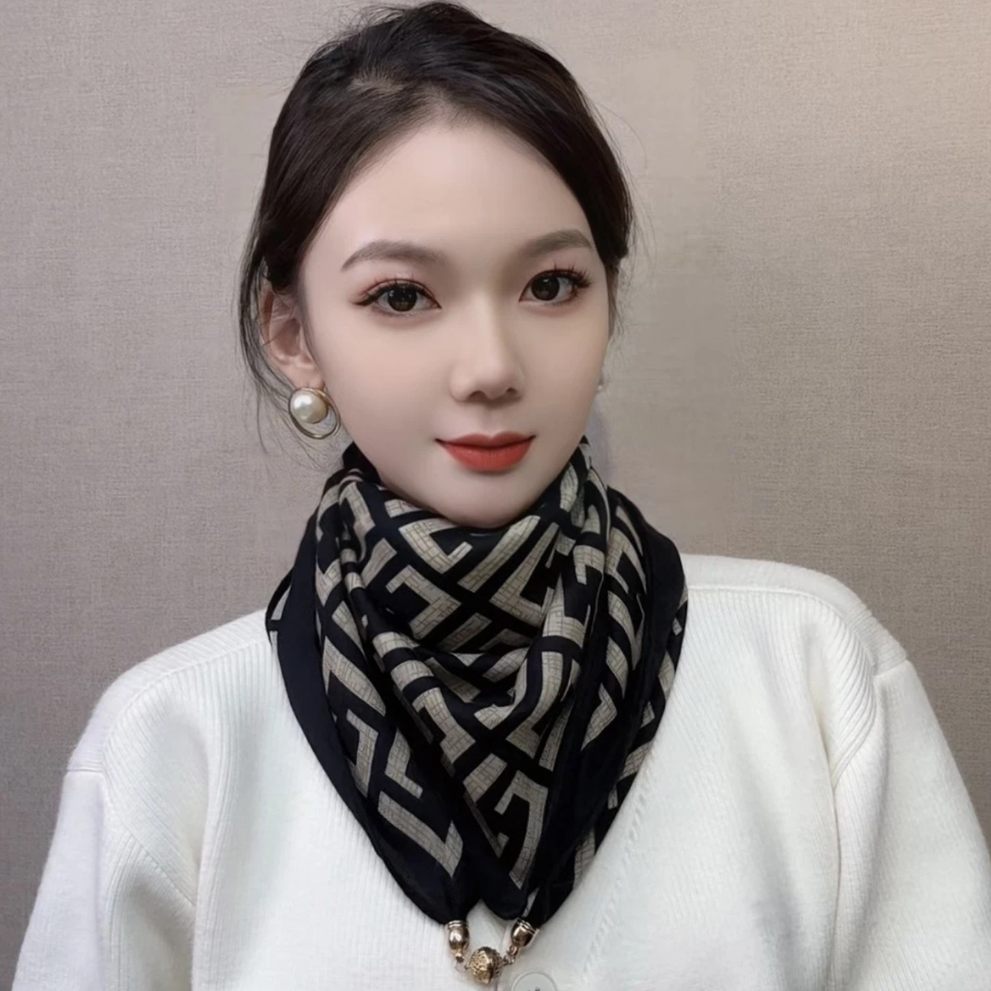 护颈围巾女三角巾秋冬保暖时尚洋气高档磁吸扣方巾丝巾女2025新款