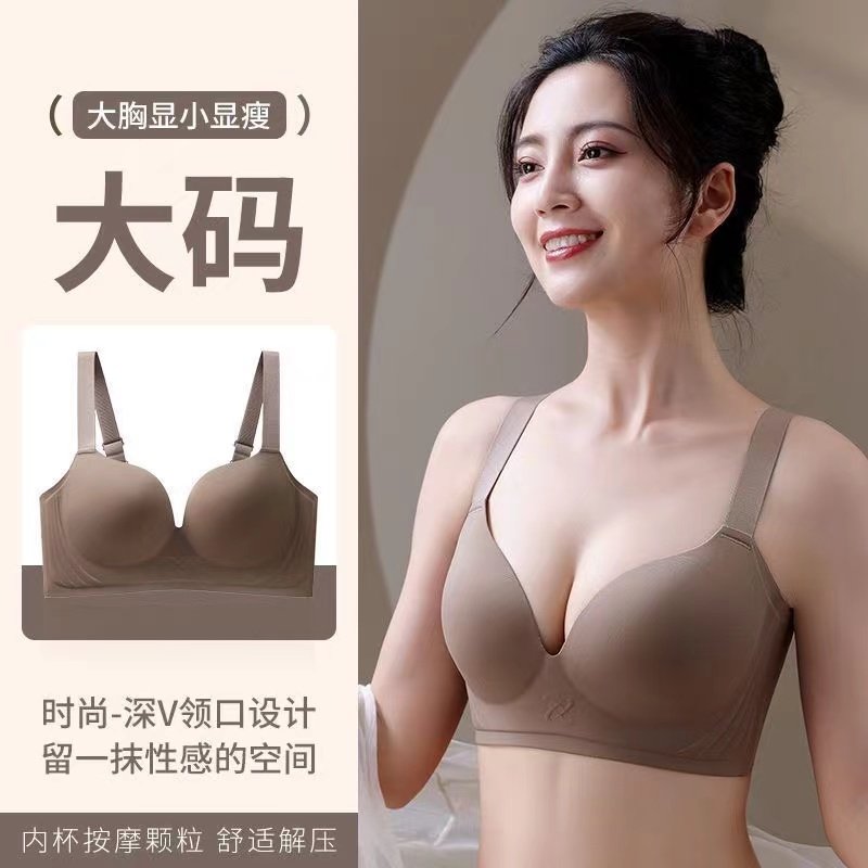 内衣女薄款大胸显小无痕上托聚拢防下垂无钢圈收副乳大码文胸罩
