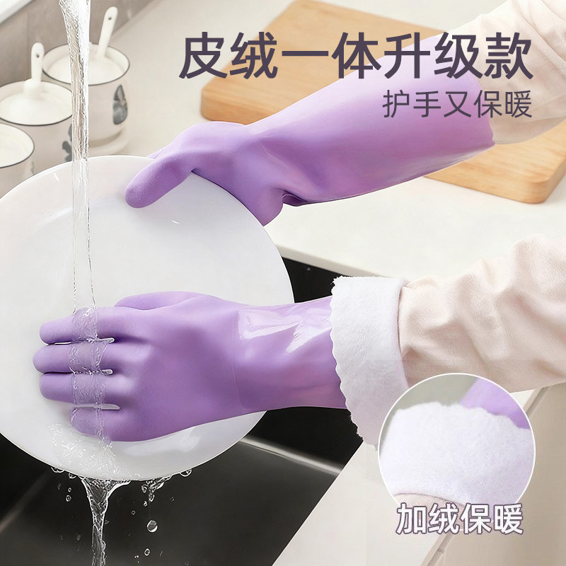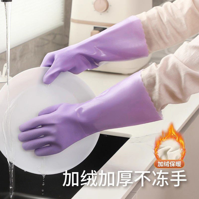 加绒洗碗手套一体绒家务加长加厚耐用保暖洗衣防水清洁防滑耐磨