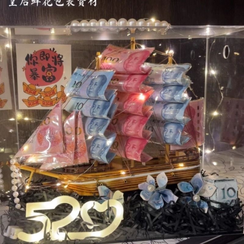 创意diy帆船钱折的花束全套材料包生日礼物送姐姐闺蜜老婆老公