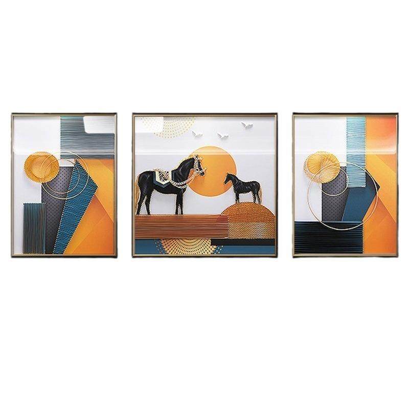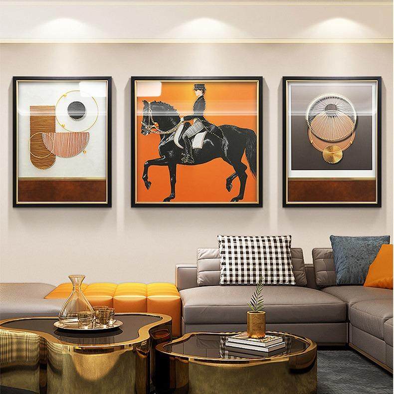 新款客厅三联画现代简约装饰画轻奢手工立体实物画沙发背景马挂画