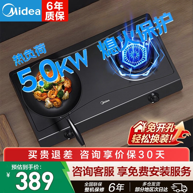 美的台式免开孔猛火燃气灶煤气灶家用天然气液化气双灶灶台台上灶